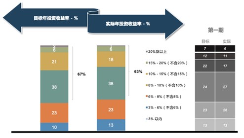 过去一年,有67%的富裕家庭设置了8%以上的收益率目标,实际年收益8%以上的家庭占比为63%;但15%以上的目标收益和实际收益的占比下降幅度较大。