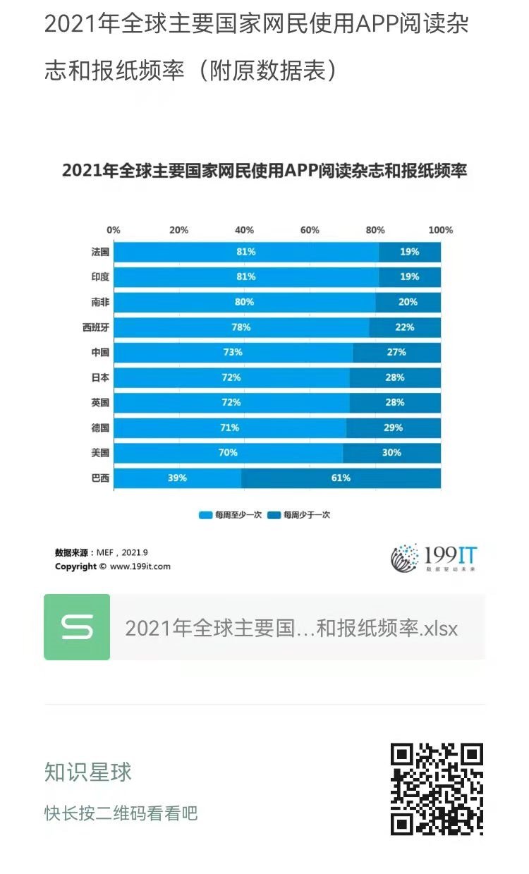 2021年全球主要国家网民使用APP阅读杂志和报纸频率(附原数据表) ​​​​