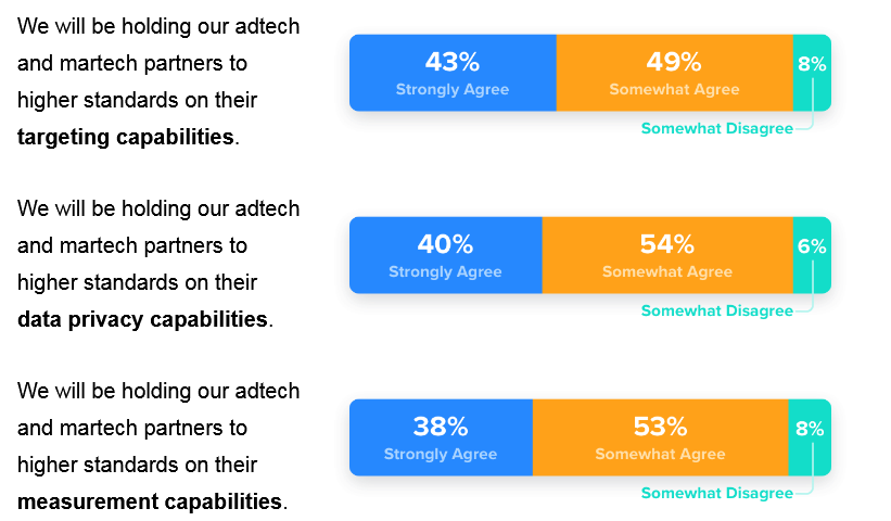 目前,广告主正依靠他们的代理机构以及广告技术和营销技术合作伙伴来制定解决隐私变化的长期解决方案。