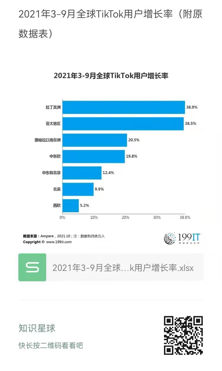 2021年3-9月全球TikTok用户增长率(附原数据表) ​​​​