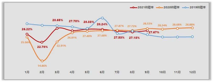 中国汽车流通协会: 2021年9月二手车市场简析 2021年9月二手车市场整体表现 2021年9月,全国二手车市场交易量157.53万辆,交易量环比增长5.14%,较去年同期增长7.44%,同比增速与19年同期基本持平。交易金额为1040.28亿元。9月份二手车行业开始进入旺季,在中秋、国庆叠加的超长假期作用下,国内自驾出行需求量激增,二手车市场在从第三周开始逐渐走强,消费能力会得到集中释放。另外,9月份虽有局部地区出现疫情反复的情况,但并未流向其它省份,造成大面积扩散,因此并未给二手车市场代来明显的影响。具体来看,本月乘用车情况:基本型乘用车共交易93.84万辆,环比增长4.11%,同比增长6.1%;SUV 共交易18.32万辆,环比增长10.03%,同比增长35.95%;MPV共交易9.16万辆,环比增长4.4%,同比增长10.47%;交叉型乘用车共交易3.90万辆,环比增长12.36%,同比增长19.67%。本月商用车情况:客车11.10万辆,环比增长3.14%,同比下降13.76%;载货车13.07万辆,环比增长3.41% ,同比下降6.66%。 同时9月份的二手车市场也呈现出一些结构性的市场特征:第一,新车市场芯片问题导致的新车供应不足降低了车辆的置换率,二手车收车价格上涨、成本增加传导至终端市场价格也随之上扬。第二,从车龄结构来看,3年以内的准新车在本月的市场份额增长了2个百分点。第三,商用车同比降幅明显增大,其主要原因在于第一受新车商用车市场拖累,价格急剧下跌从而传导到二手车市场购方企业观望情绪浓厚。第二是二手商用车主要用于生产资料的使用,特别是以交通、运输、旅游为主要业务,今年受散点多发的疫情影响较大。 2021年9月六大区域情况分析 2021年9月六大区域二手车交易量 2021年9月六大区域交易量增速 2021年9月,全国六大区中仅华北地区环比为负增长,其他区域环比均为正增长。其中中南地区增长最为明显,环比均增长了14.52个百分点,二手车交易量为44.28万辆;其次是西南地区环比增长了9.96%,共交易了23.23万辆;西北地区环比增长了4.66%,共交易,8.27万辆;华东和东北两个地区环比小幅增长,分别交易了51.99万辆和10.63万辆。华北地区环比下降4.18%,共交易二手车19.14万辆。 2021年跨区域流通情况 9月二手车转籍比例为27.67%,转籍比例较去年同期下降了0.85个百分点。环比上月增长了0.52个百分点。 2021年1-9月二手车市场整体表现 2021年1-9月全国累计交易二手车1296.68万辆,同比增长35.34%。其中,基本型乘用车共交易782.75万辆,同比增长37.34%;SUV共交易141.86万辆,同比增长55.58%;MPV共交易75.29万辆,同比增长34.12% ;交叉型乘用车共交易29.55万辆,同比增长27.22%;客车98.79万辆,同比增长18.22%;载货车108.79万辆,同比增长22.01%。从第二季度开始,去年同期的“低基数”影响逐渐减缓,1-9月各分车型增速相比1-8月均有明显回落。 今年第三季度,二手车交易量为453.26万辆,较去年同期增长11.52%,同比增速与2020年相比增加了2.36个百分点。三季度在经历了疫情的反复叠加各地极端恶略天气的影响仍然保持两位数的增长,说明二手车市场自身的韧性及支撑力都较强。因此,对于四季度的预期继续向好,全年预计达到1600万辆的交易规模。 更多阅读:中国汽车流通协会:2021年1月全国二手车市场深度分析中国汽车流通协会:2022年2月全国二手车市场深度分析中国汽车流通协会:2022年3月全国二手车市场深度分析中国汽车流通协会:2022年3月全国二手车市场深度分析中国汽车流通协会:2019年9月二手车市场详细分析中国汽车流通协会:二手车市场走势特征分析中国汽车流通协会:2022年9月全国二手车市场深度分析中国汽车流通协会:2020年4月二手车市场深度分析中国汽车流通协会:2019年二手车市场概况及形式分析【上】中国汽车流通协会:2019年2月全国二手车市场分析中国汽车流通协会:2020年3月份国内狭义乘用车市场销量达104.5万辆 同比下降40.4%中国汽车流通协会:2020年4月中国进口汽车市场月报中国汽车流通协会:2020年第一季度豪华品牌新增授权4s店57家 退网4s店41家中国汽车流通协会:2022年4月中国汽车保值率报告中国汽车流通协会:2024年6月全国二手车市场深度分析