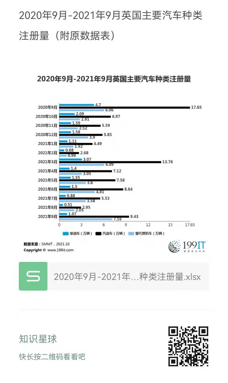 2020年9月-2021年9月英国主要汽车种类注册量(附原数据表) ​​​​
