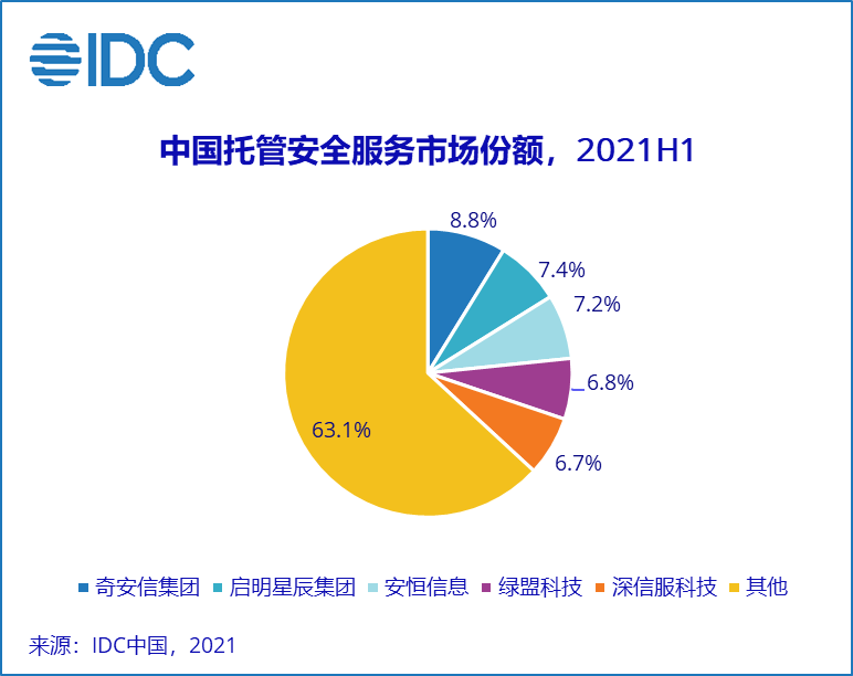 托管安全服务:安全服务提供商通过安全运营中心(SOC)进行全天候远程管理或监控的IT安全服务。服务范围包括部署在本地、外部数据中心和云上的托管安全服务。2021上半年关键厂商表现如下图: