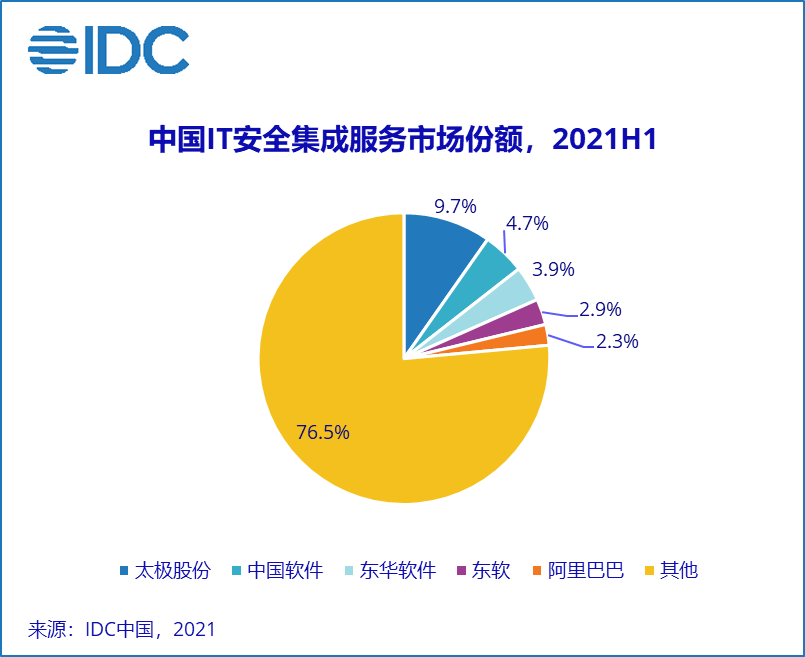 安全集成服务:是技术服务提供商通过规划、设计、实施、项目管理四个步骤形成完整安全解决方案的服务,它涉及系统和应用程序的定制化开发,以及集成企业打包的安全硬件、软件服务等,2021上半年关键厂商表现如下图: