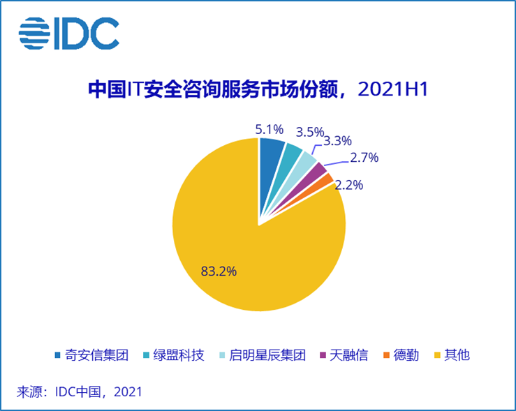 安全咨询服务:属于专业服务的范畴,具体包括安全战略与规划、合规与审计、安全策略评估与开发、测试类服务、应急响应服务等多个咨询服务类别,2021上半年关键厂商表现如下图:
