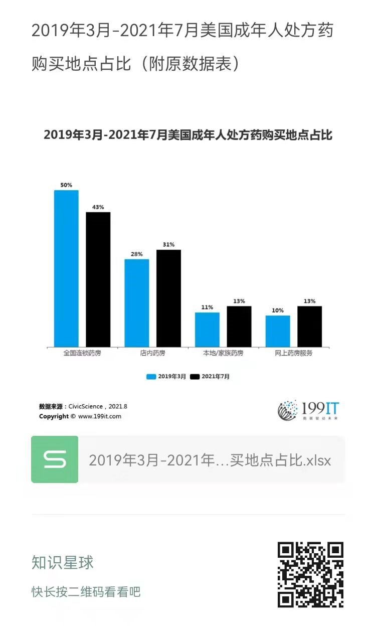 2019年3月-2021年7月美国成年人处方药购买地点占比(附原数据表) ​​​​