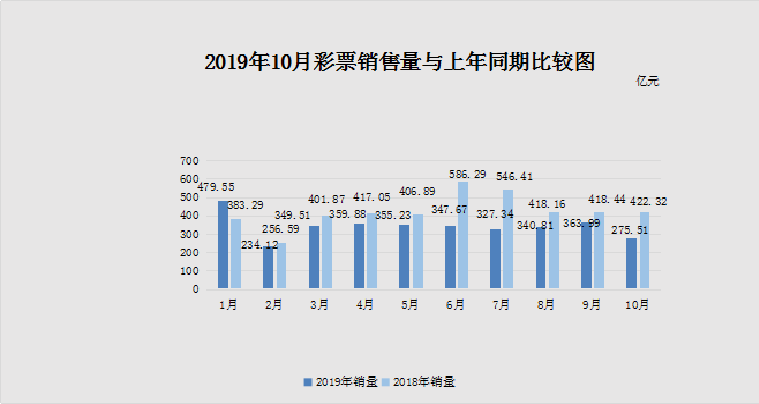 10月份,全国共销售彩票275.51亿元,比上年同期(简称“同比”)减少146.81亿元,下降34.8%。同比降幅较大主要原因是今年年初调整高频快开彩票游戏和竞猜彩票游戏规则的政策影响继续显现,以及今年国庆期间首次实行的彩票休市因素影响。其中,福利彩票机构销售126.80亿元,同比减少62.44亿元,下降33.0%;体育彩票机构销售148.72亿元,同比减少84.37亿元,下降36.2%。