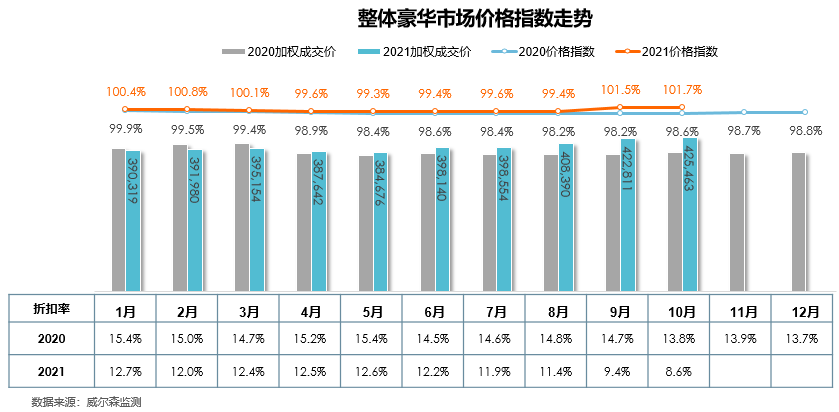 此外,10月国产豪华车市场折扣继续减少,主要原因依旧是芯片供应不足影响相当一部分车型的资源。从价格指数来看,国产豪华车市场回升0.3%。