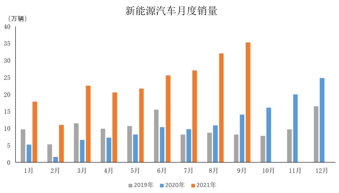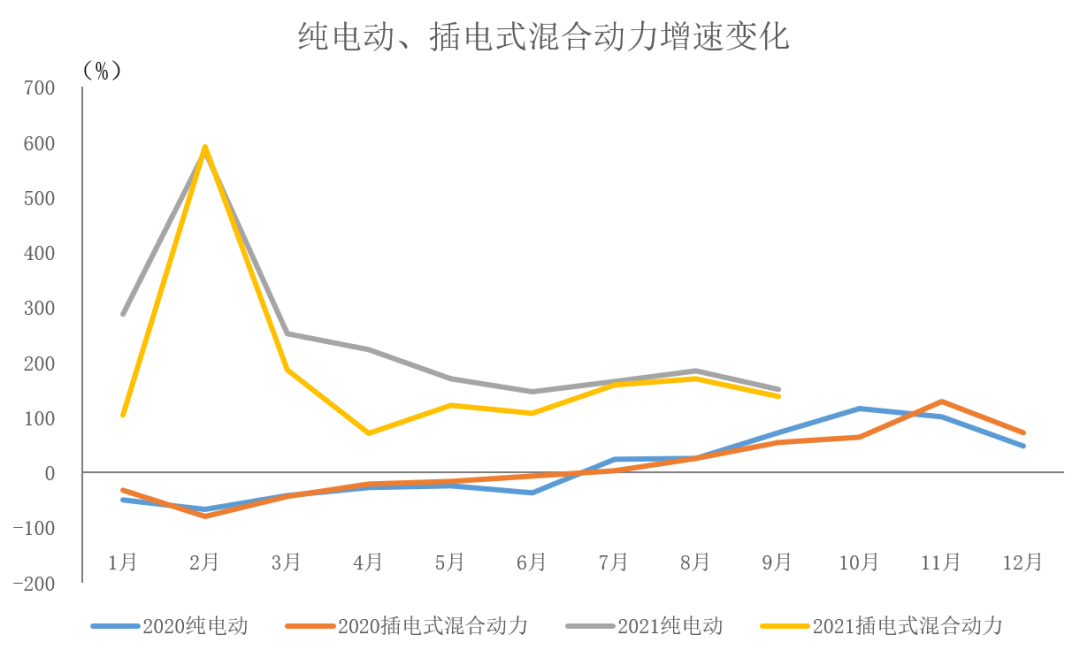 2021年9月,在新能源汽车主要品种中,与上月相比,纯电动和插电式混合动力汽车产销均呈增长;与上年同期相比,纯电动和插电式混合动力汽车产销同样保持迅猛增长。