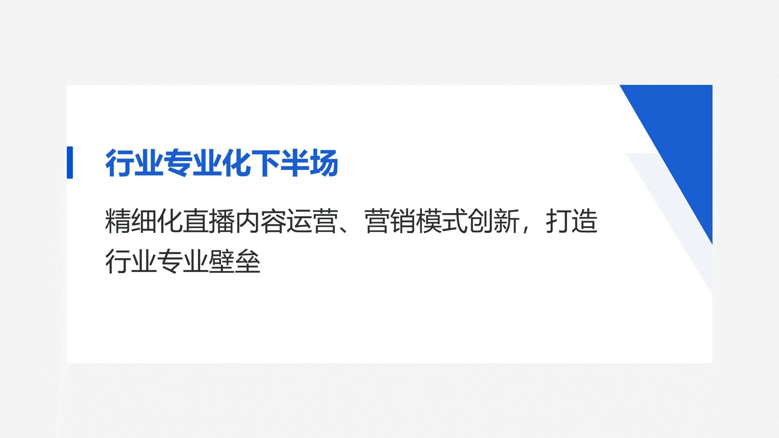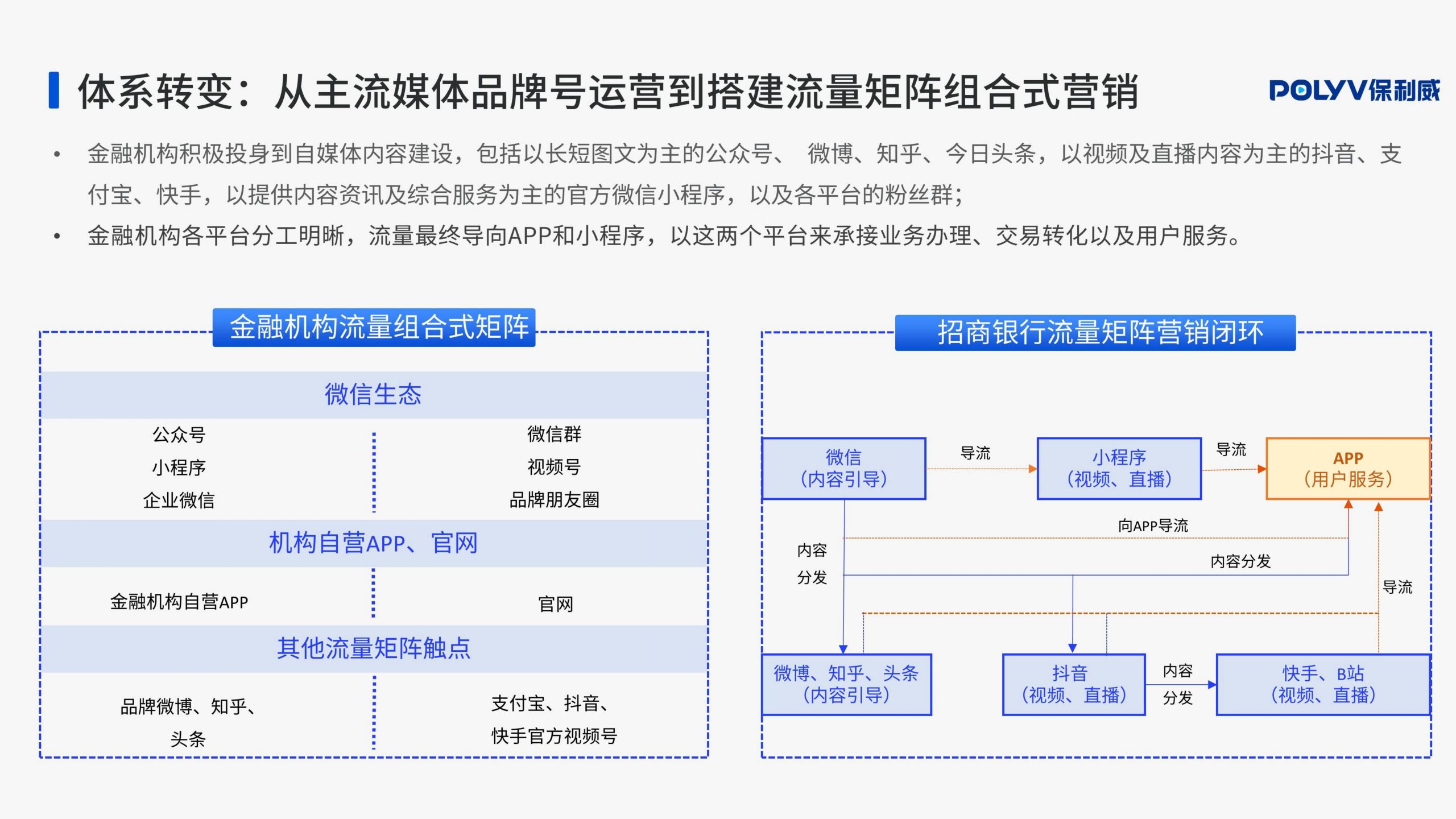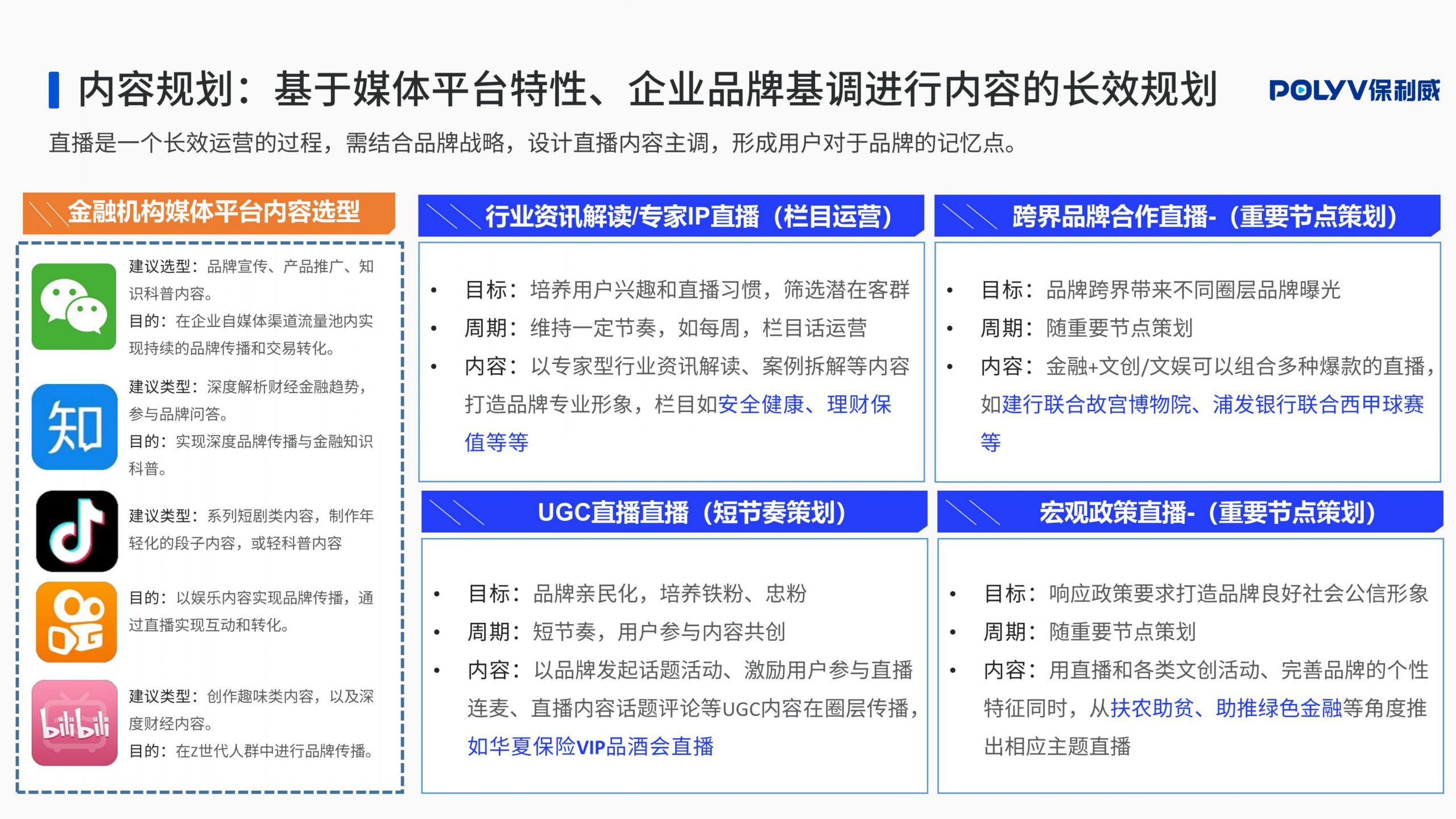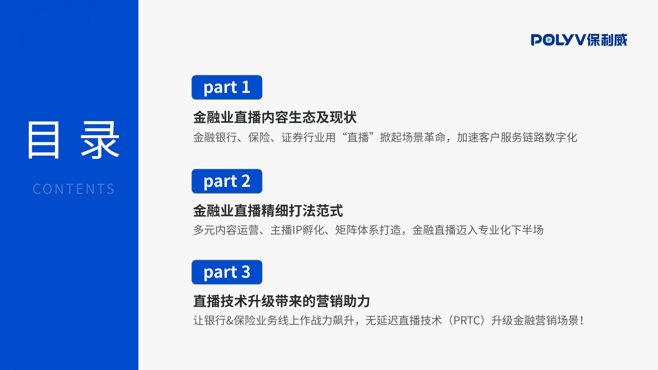 尤其是随着消费者的全面线上化,潜在客户从接触,到感兴趣,再到通过直播咨询一步步成为客户,全链路的金融服务都能在线上完成,直播直接加速了金融服务链路的数字化。在这样的趋势和浪潮之下,粗略式、无体系的直播打法将成为过去式,而精细化的直播内容运营、直播平台升级、营销模式的创新,将开启行业专业化的下半场。