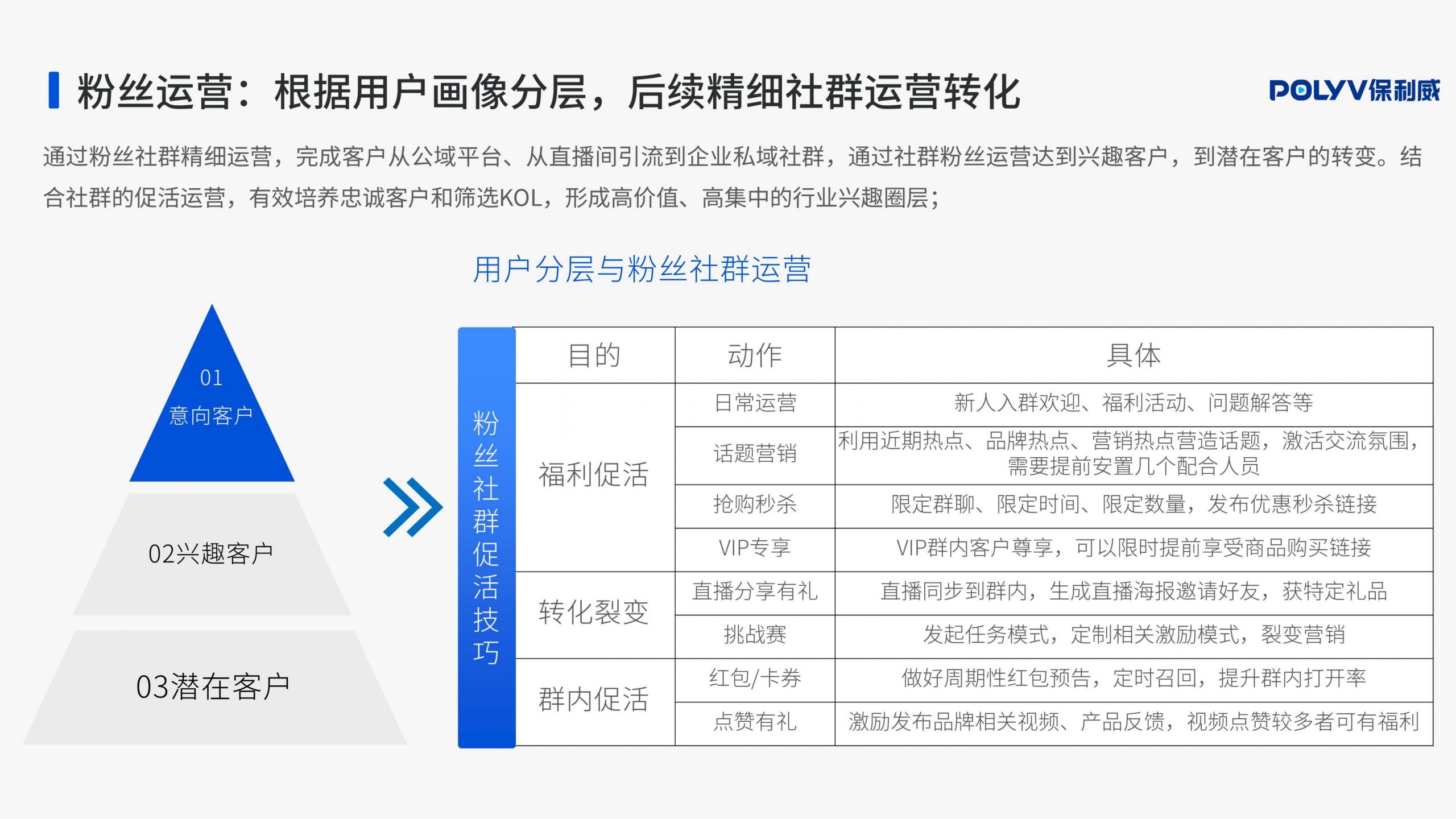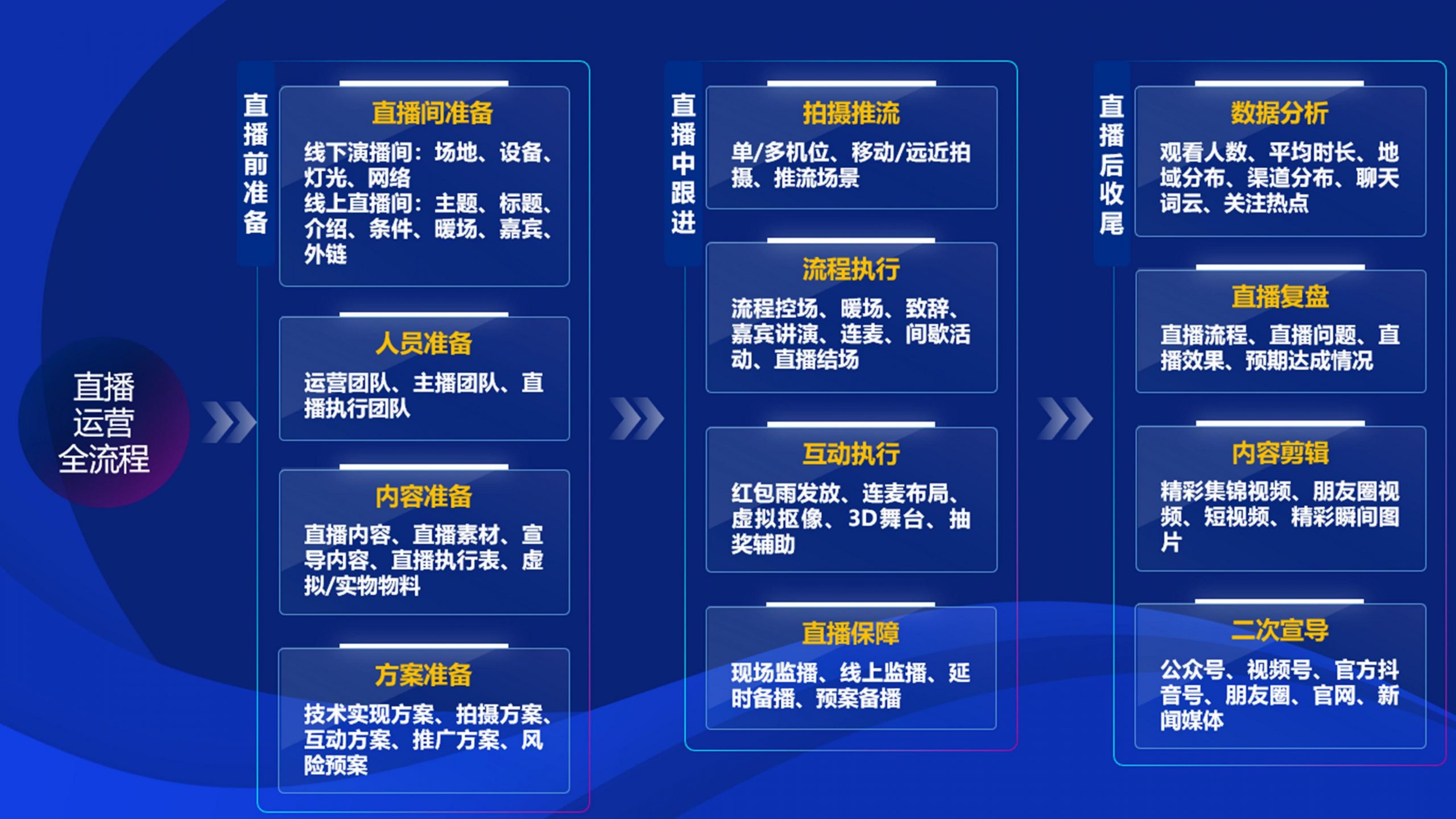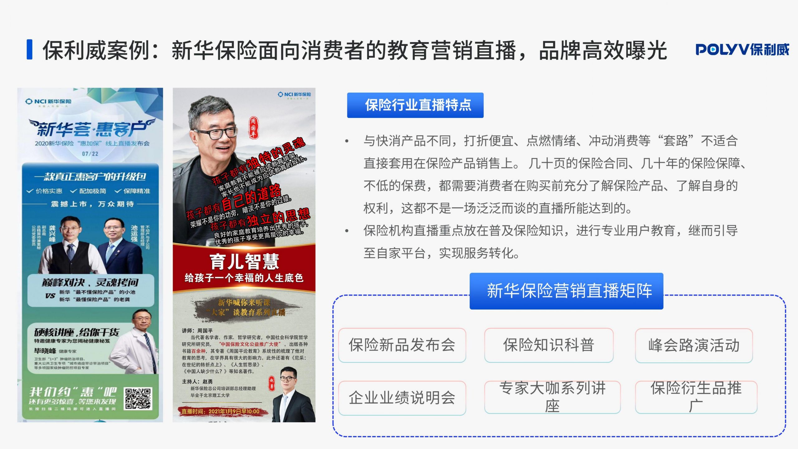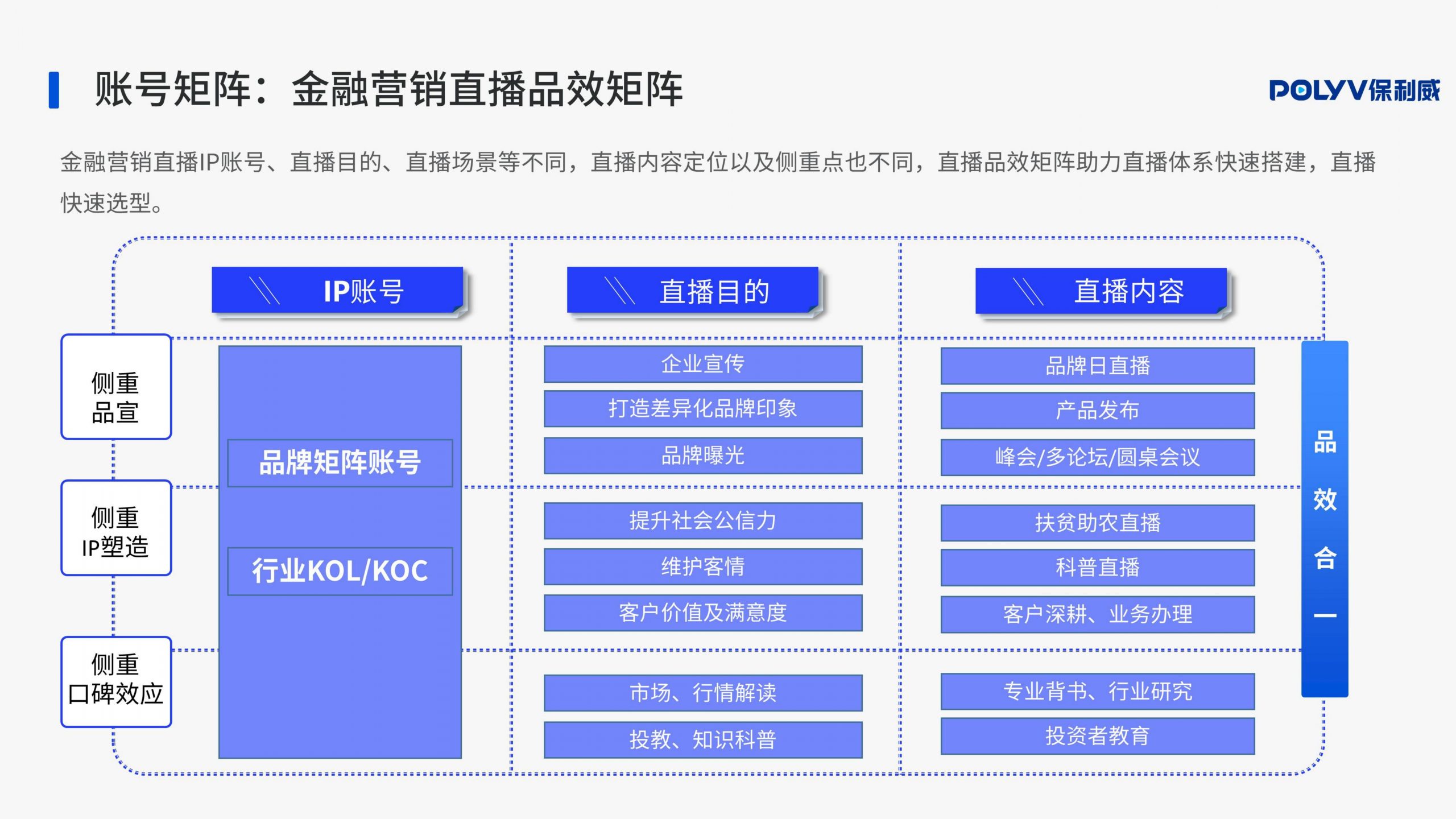 尤其是随着消费者的全面线上化,潜在客户从接触,到感兴趣,再到通过直播咨询一步步成为客户,全链路的金融服务都能在线上完成,直播直接加速了金融服务链路的数字化。在这样的趋势和浪潮之下,粗略式、无体系的直播打法将成为过去式,而精细化的直播内容运营、直播平台升级、营销模式的创新,将开启行业专业化的下半场。
