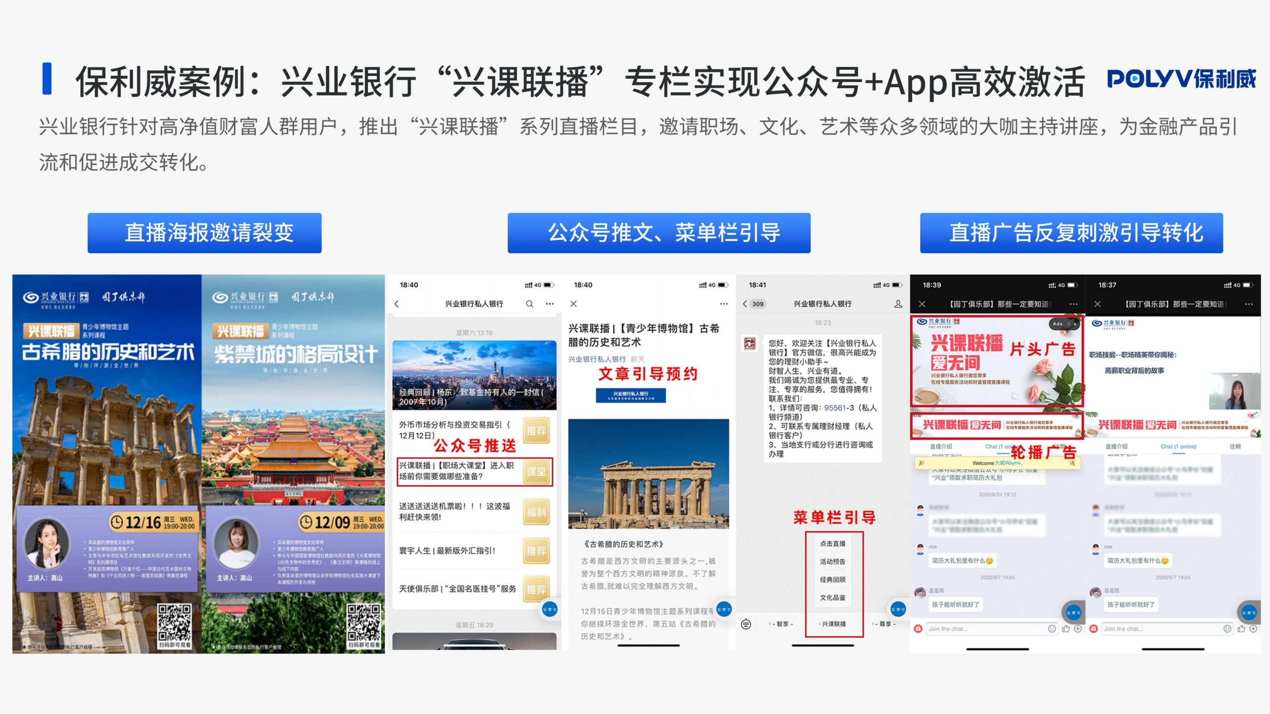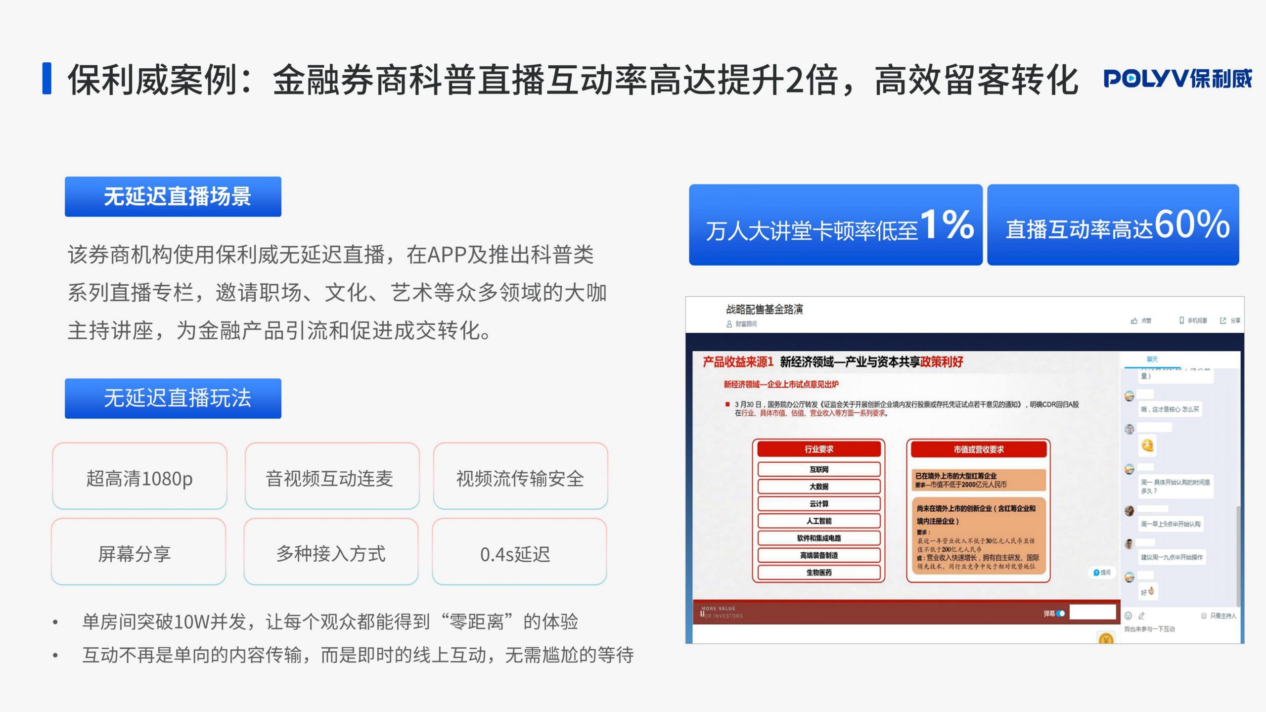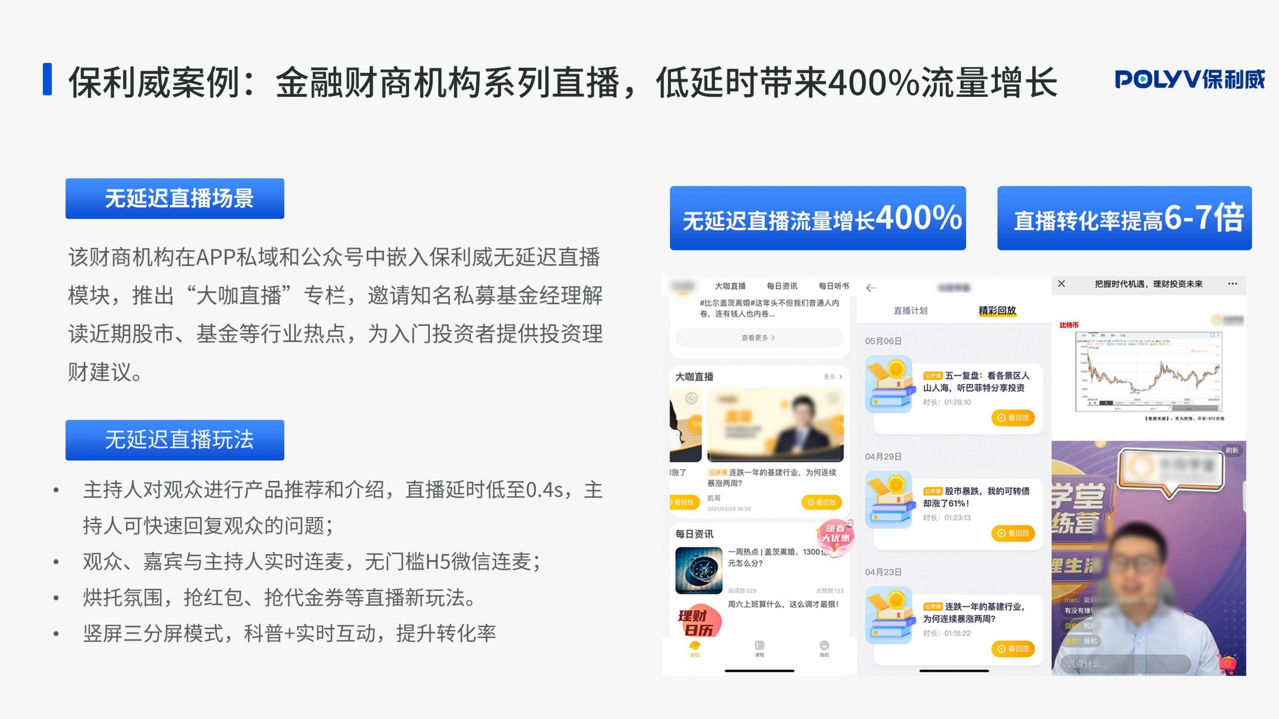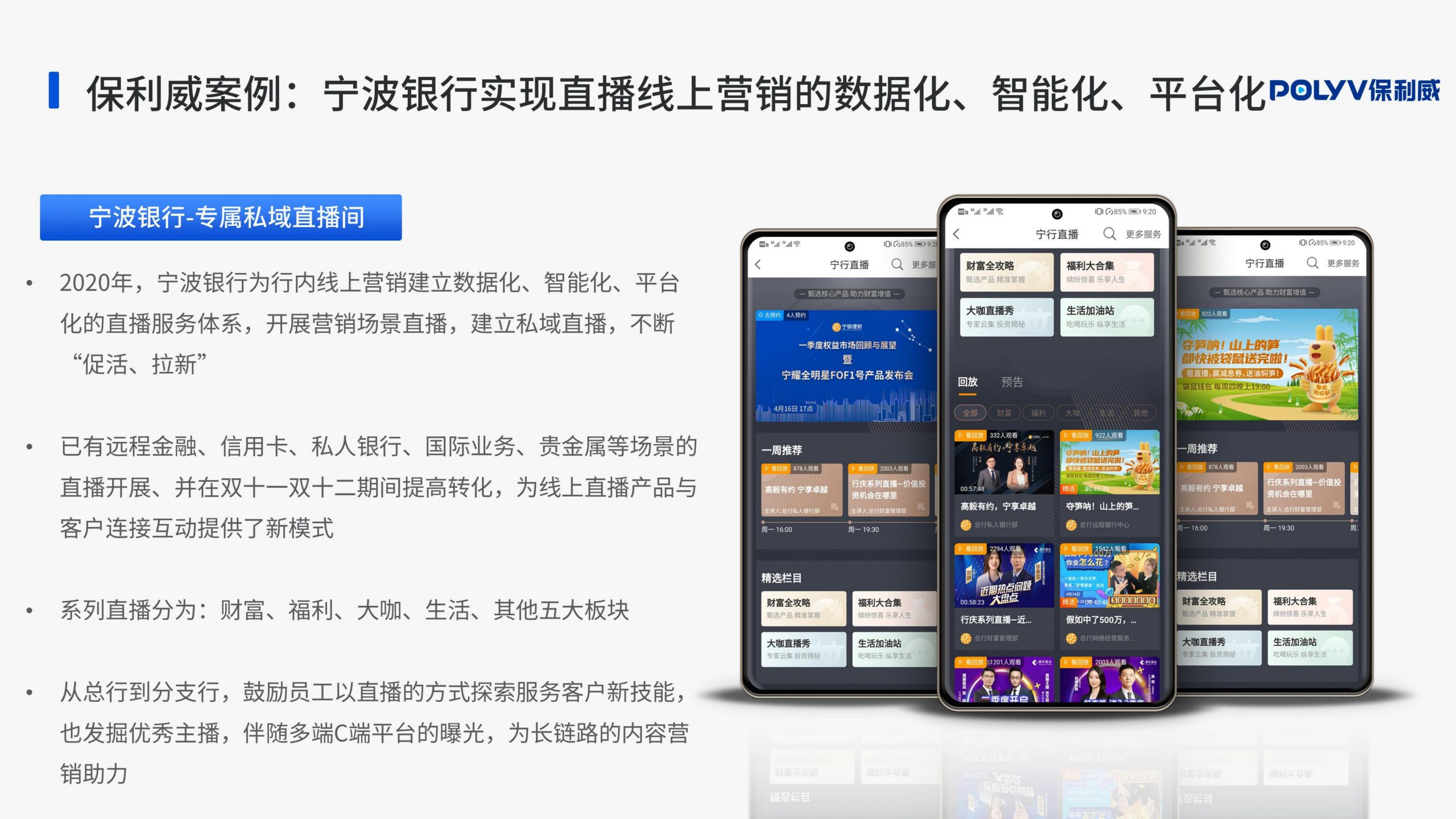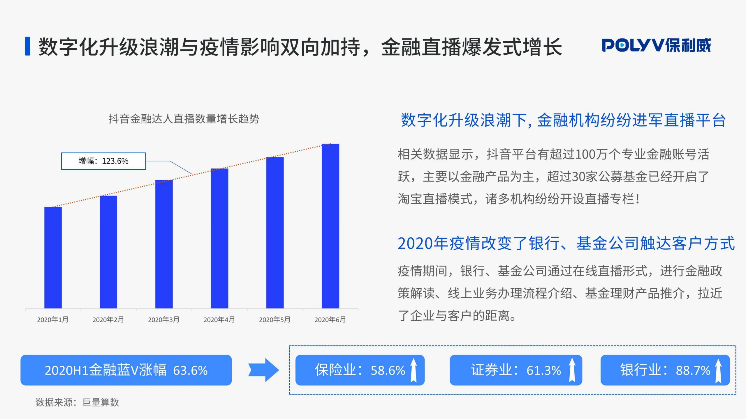 随着业务发展需要,直播正在不断拓展到金融行业各个场景,衍生出“金融+文创、金融+扶贫、投顾服务,除此之外还有路演、科普、峰会、新品发布会”等不同直播场景。