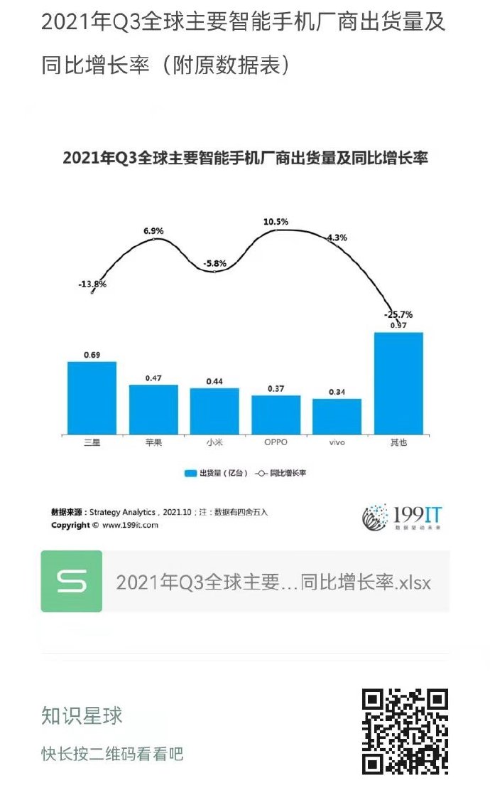 2021年Q3全球主要智能手机厂商出货量及同比增长率(附原数据表) ​​​​
