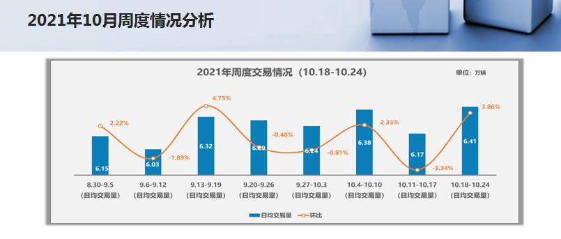 本周虽又重回交易高峰,但自10月17日以来,本轮疫情在已波及全国11省份,主要集中在西北、华北等地。日前多地已经启动疫情防控三级响应,倡导非必要不出本省,目前部分涉疫地区的交易市场暂停营业,并且受疫情影响的地区还在扩大,这对10月第四周二手车市场将带来很多不确定性。