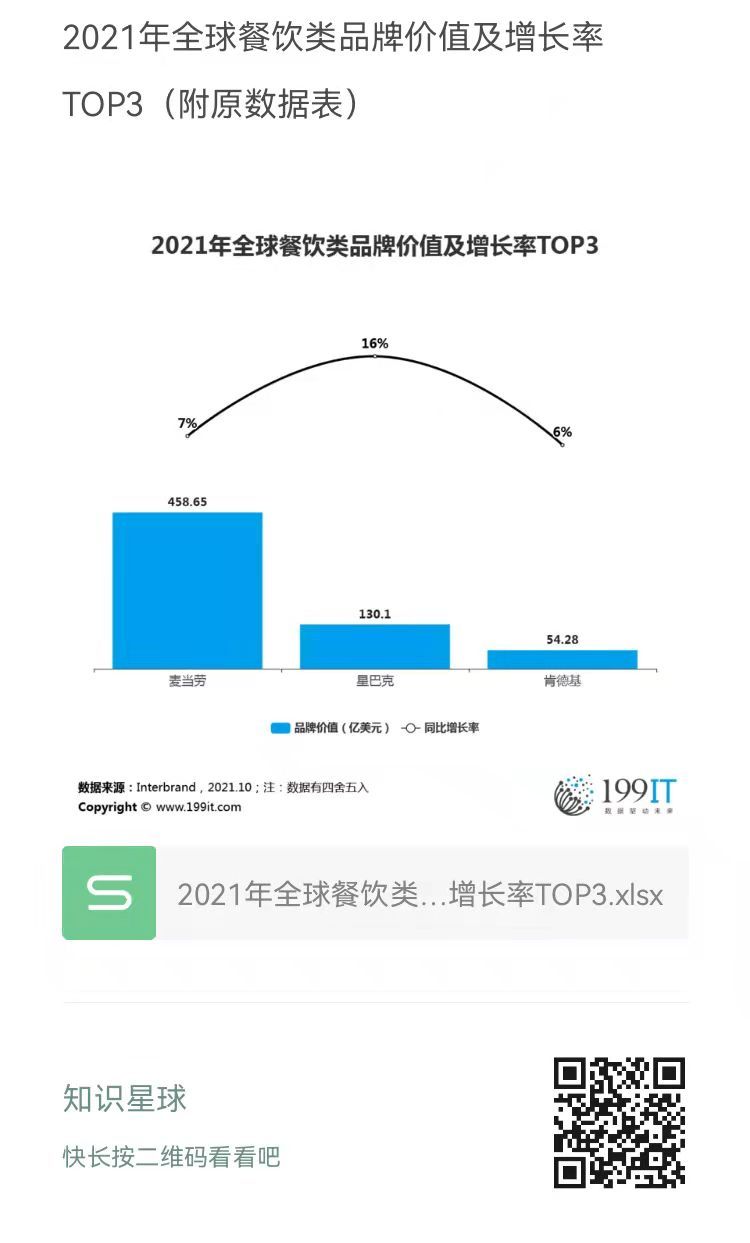2021年全球餐饮类品牌价值及增长率TOP3(附原数据表) ​​​​