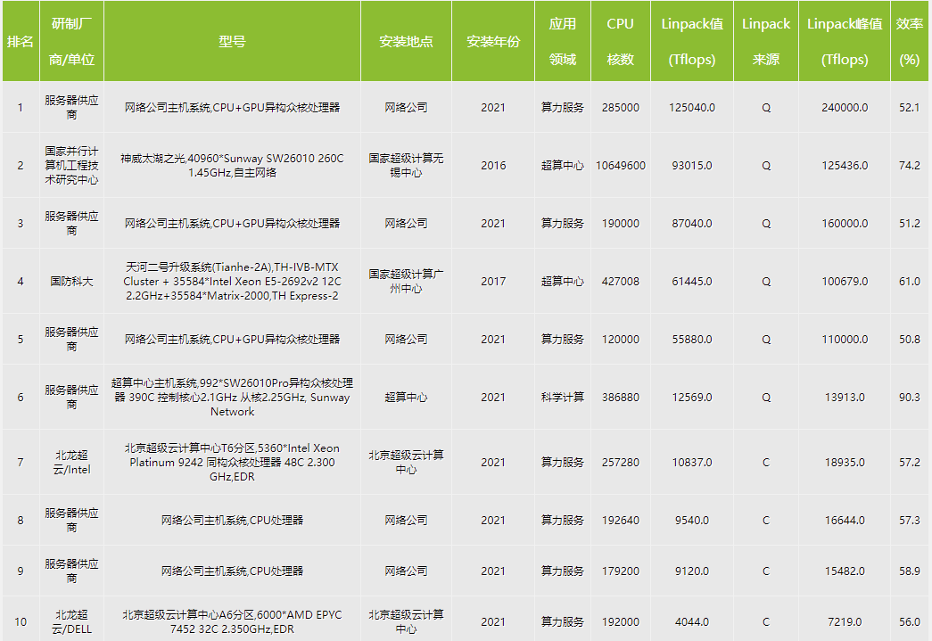 据悉,榜单前100台超算系统的平均性能相比2020年提升达79%。