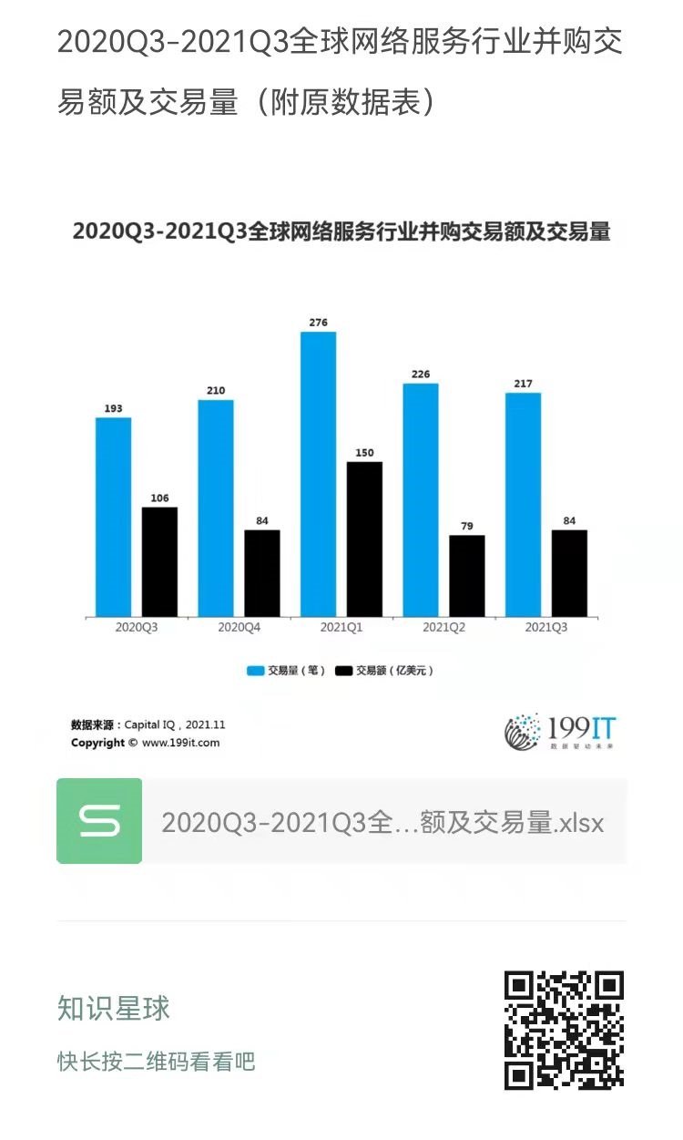 2020Q3-2021Q3全球网络服务行业并购交易额及交易量(附原数据表) ​​​​