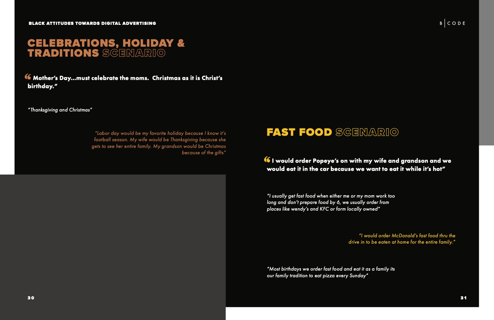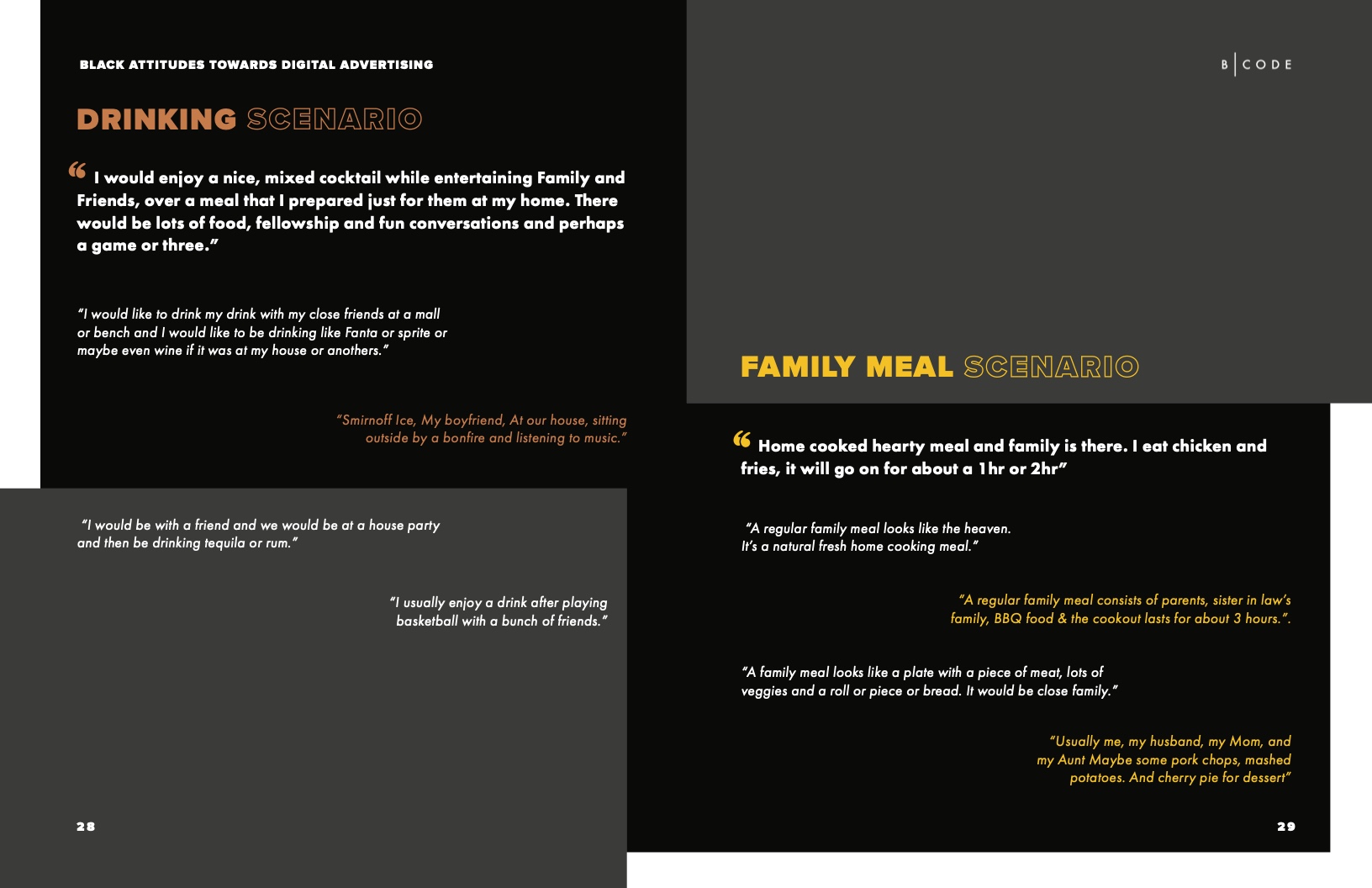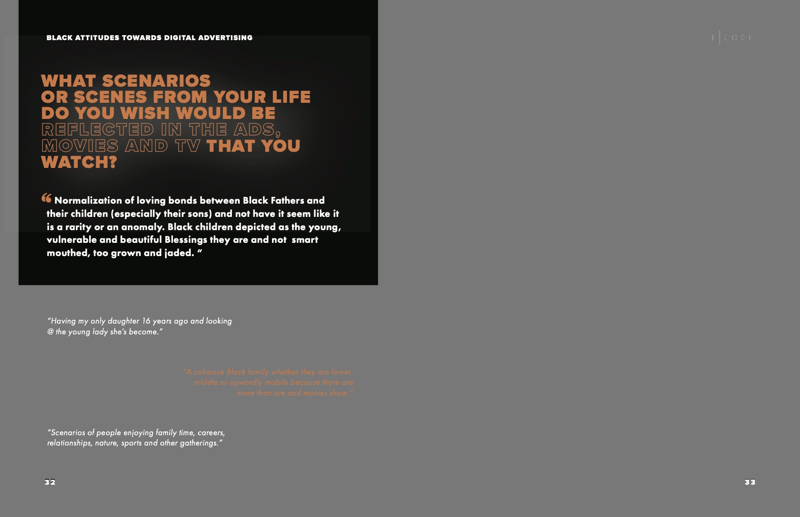 为了让非洲裔美国人在广告中感觉到更多的种族代表性,受访者列举了几种选择,其中许多与吸引他们注意力的因素相对应。这些元素中包括支持对其文化重要问题的广告(56%);以来自其民族或种族群体的真实人物的故事为特色(53%);以及与他们的文化明确相关的广告设置或背景(51%),例如节日庆典、房间装饰或派对类型。另一些人还认为,包括音乐或其他与其种族相关的艺术(50%)会让他们在广告中感觉到更多的种族代表性。