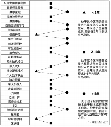 图2 智能教育相关技术到达成熟期所需年限情况