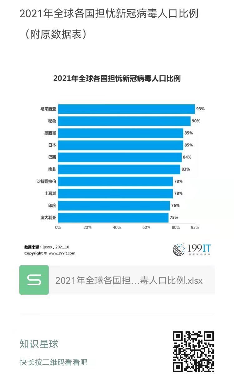 2021年全球各国担忧新冠病毒人口比例(附原数据表) ​​​​