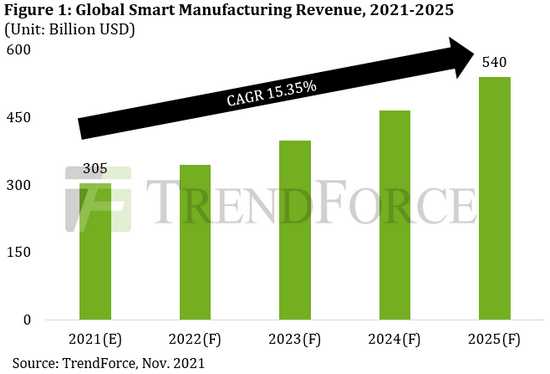 分析公司 TrendForce 表示,随着企业开始使用工业 4.0 工具,预计该领域可在 2025 年达成 5400 亿美元的营收。至于近期被热炒的“工业元宇宙”概念,TrendForce 也指出其中一项主要应用为“数字双生”—— 即在“元宇宙”中复制现实生活中的对象。这项技术已开始被某些企业所采用,但未来的使用率有望迎来进一步增长。