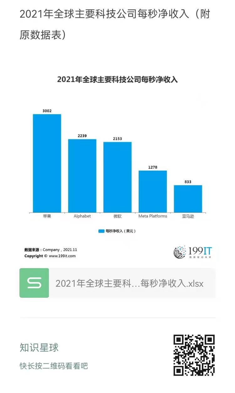 2021年全球主要科技公司每秒净收入(附原数据表) ​​​​