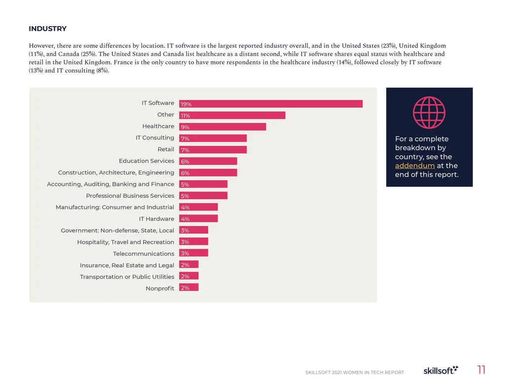 企业数字学习领域的全球领导者 Skillsoft 今天发布了新的研究报告,探讨了科技界女性的现状,包括她们面临的挑战和障碍,以及雇主如何更好地支持她们。Skillsoft《2021 年科技界女性报告》的研究结果显示,虽然女性员工在工作场所获得了来之不易的地位,但在专业发展和职业晋升的机会方面仍然存在很大差距。