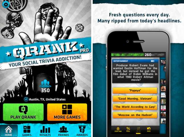 Qrank不但每天都更新上千个新问题,它还让你可以和好友分享这些问题。通过和全国的玩家竞争,获取勋章。