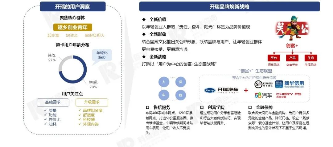 - 10月27日,开瑞汽车作为奇瑞集团“商乘并举”战略的重要布局,基于共同富裕的社会大方向,聚焦主力城镇建设、乡村振兴,以“返乡创业青年”为中心,发布了品牌焕新战略。