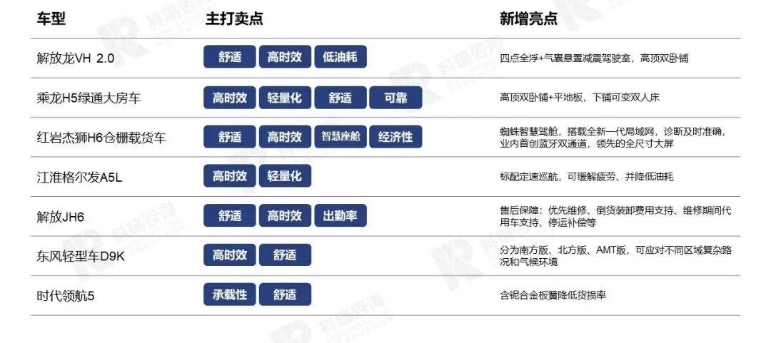 - 绿通运输法规严格,为满足免费要求必须标载,因此比较关注车辆轻量化。