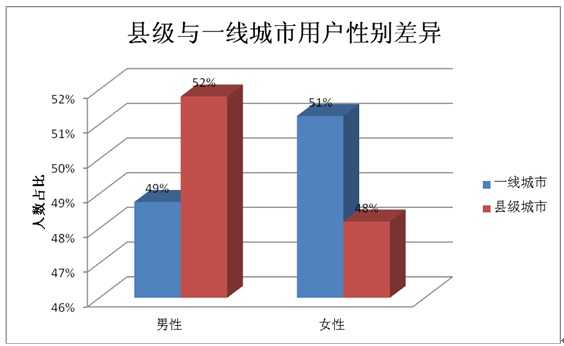 图2.县域地区与一线城市的用户在性别组成上的差异 来源:淘宝数据