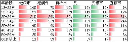 图3.各级别地区的年龄分布情况 来源:淘宝数据