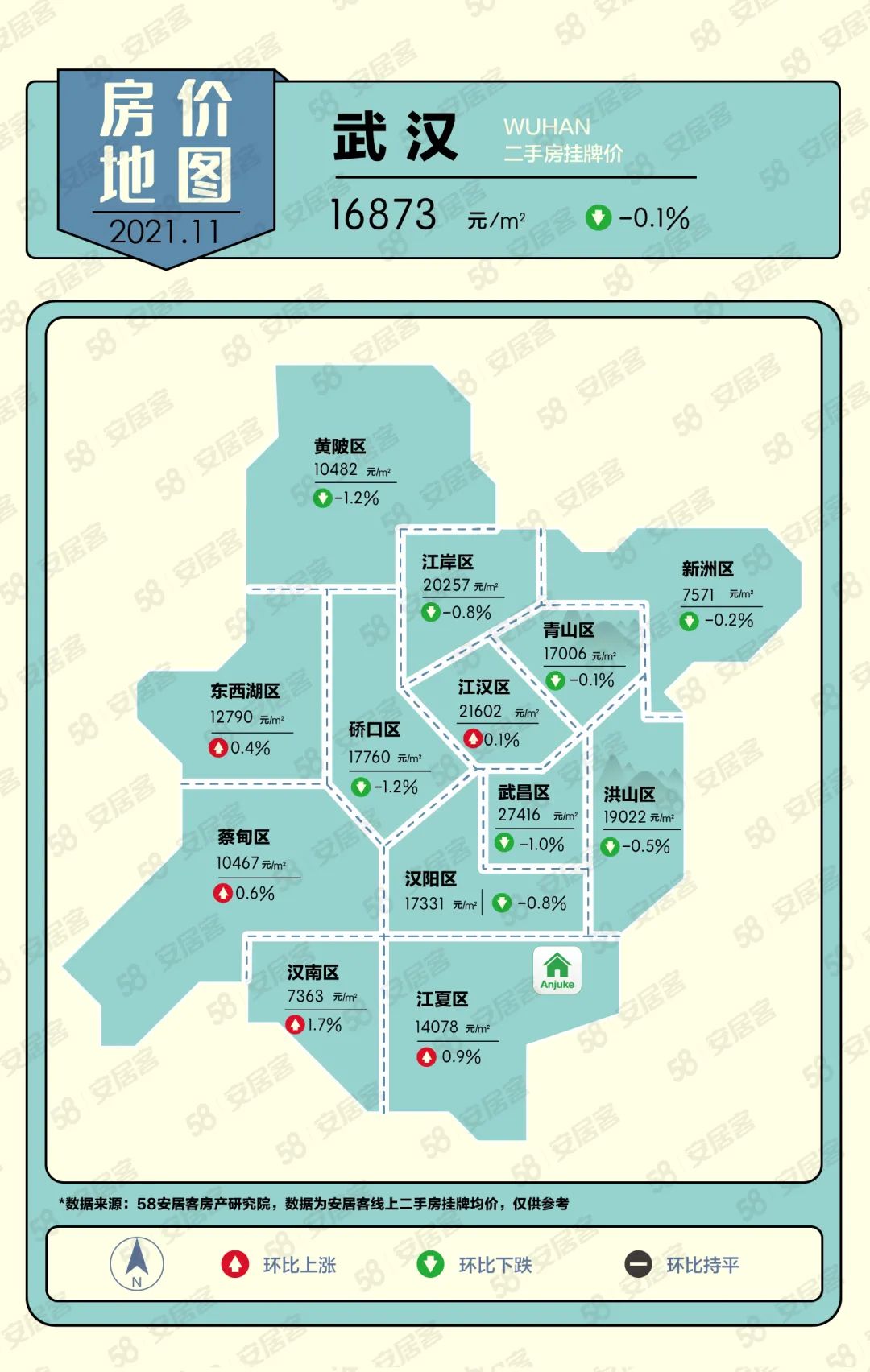 二线重点城市中,杭州11月二手房挂牌价格为31510元/平方米,环比上涨0.5%,上城、余杭、富阳、萧山、临平、钱塘区域的二手房挂牌价格环比下行。南京当月二手房挂牌价格为28144元/平方米,环比下跌1.8%,除建邺、雨花台地区外,其余9区二手房挂牌房价环比均下跌。武汉11月二手房挂牌价格为16873元/平方米,环比下跌0.1%,东西湖、汉南、江夏、江汉、蔡甸区域出现上涨情形。