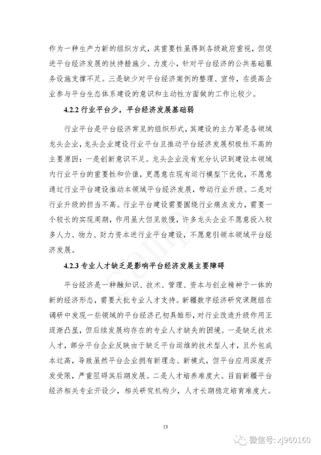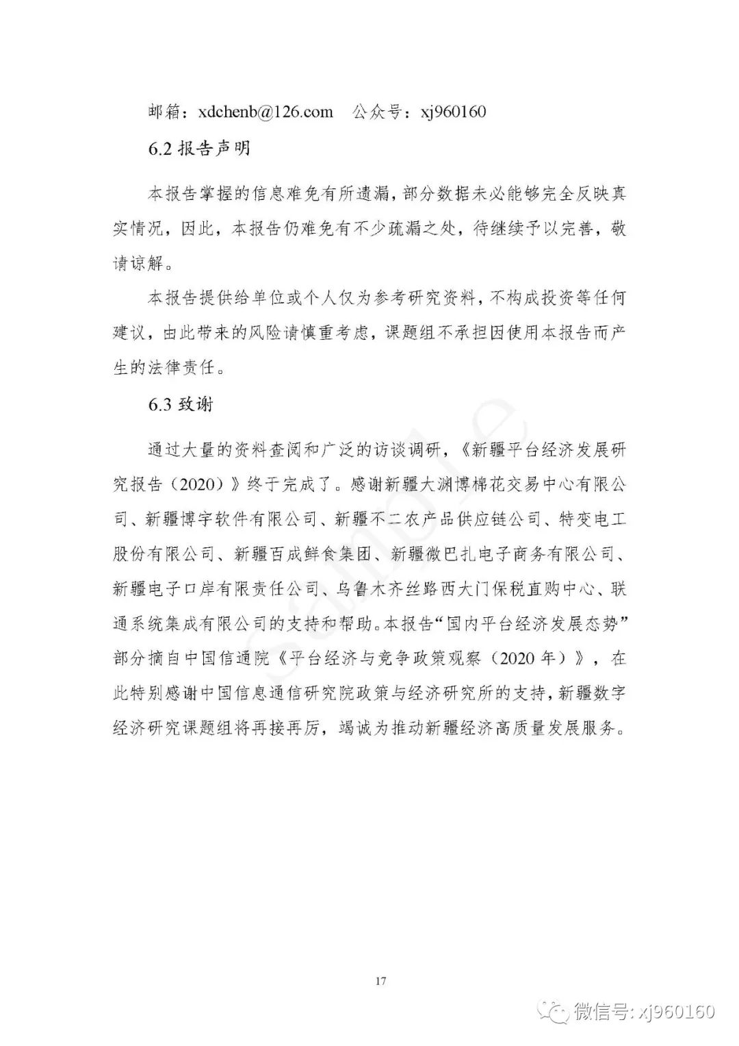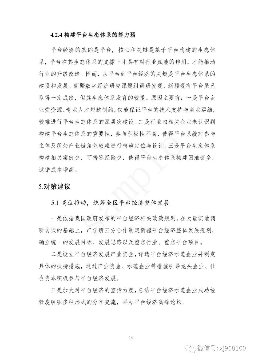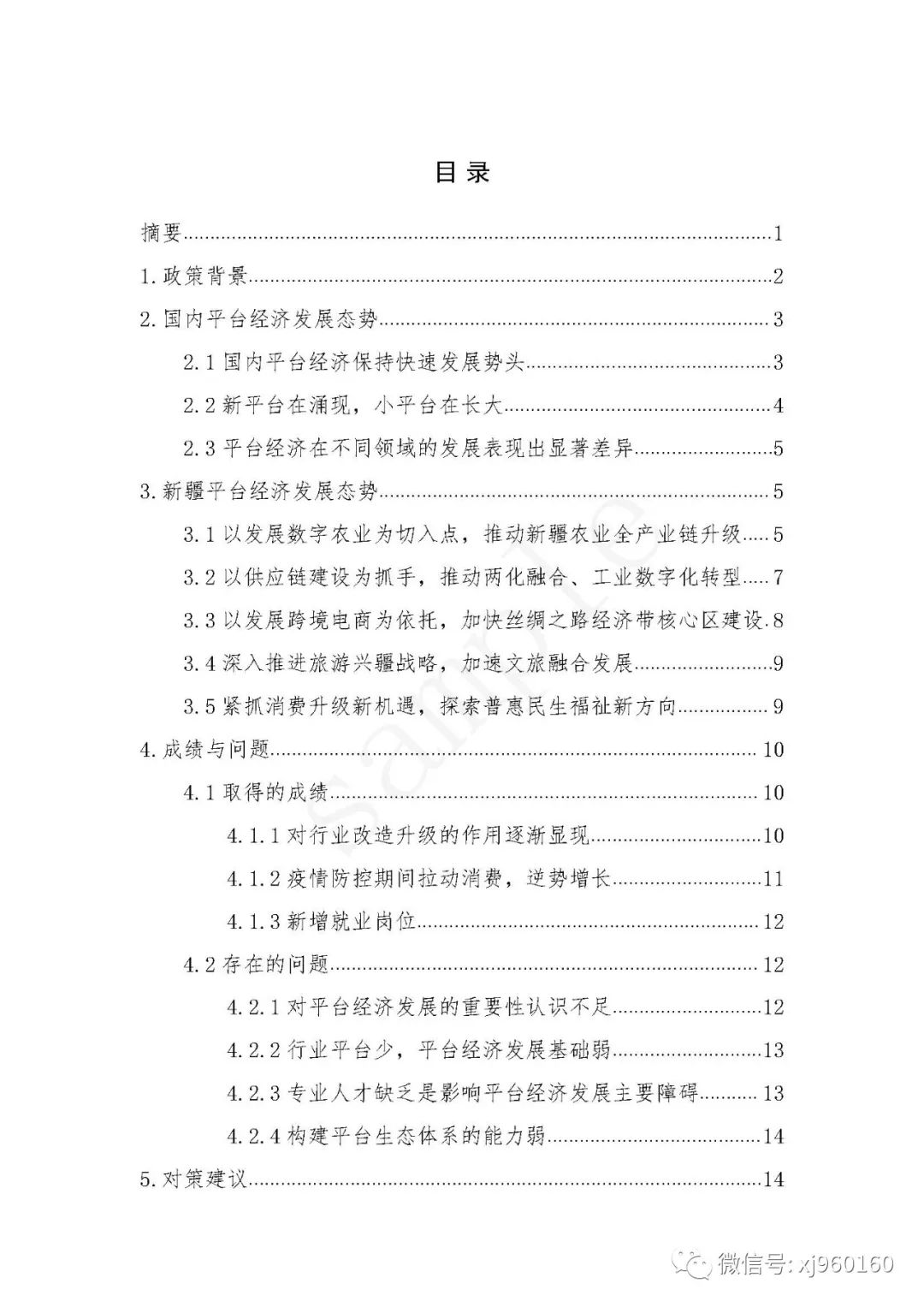 新疆数字经济研究课题组遴选出大渊博棉花交易中心平台、博宇农资管理平台、新疆不二农产品供应链平台、特变电工供应链平台、百成鲜食绿色供应链管理信息平台、微巴扎社群团购平台、乌鲁木齐国际陆港智能场站平台、乌鲁木齐丝路西大门保税直购平台、游新疆平台共9个平台开展为期 30 天的实地调研,撰写《新疆平台经济发展调研报告(2020)》,反映新疆平台经济发展现状、取得 成绩、存在问题,并提出对策建议。