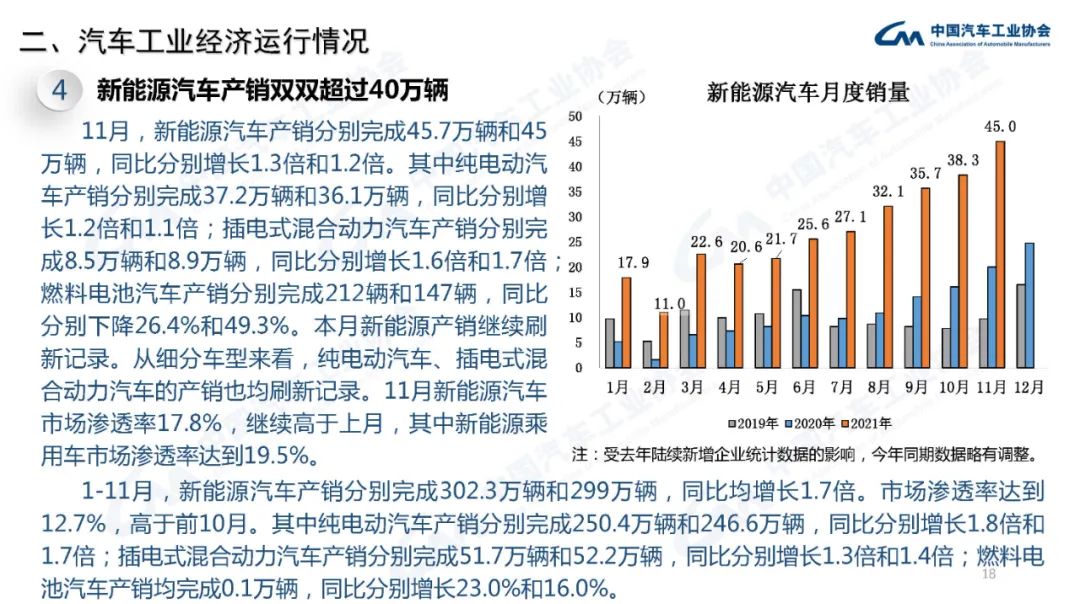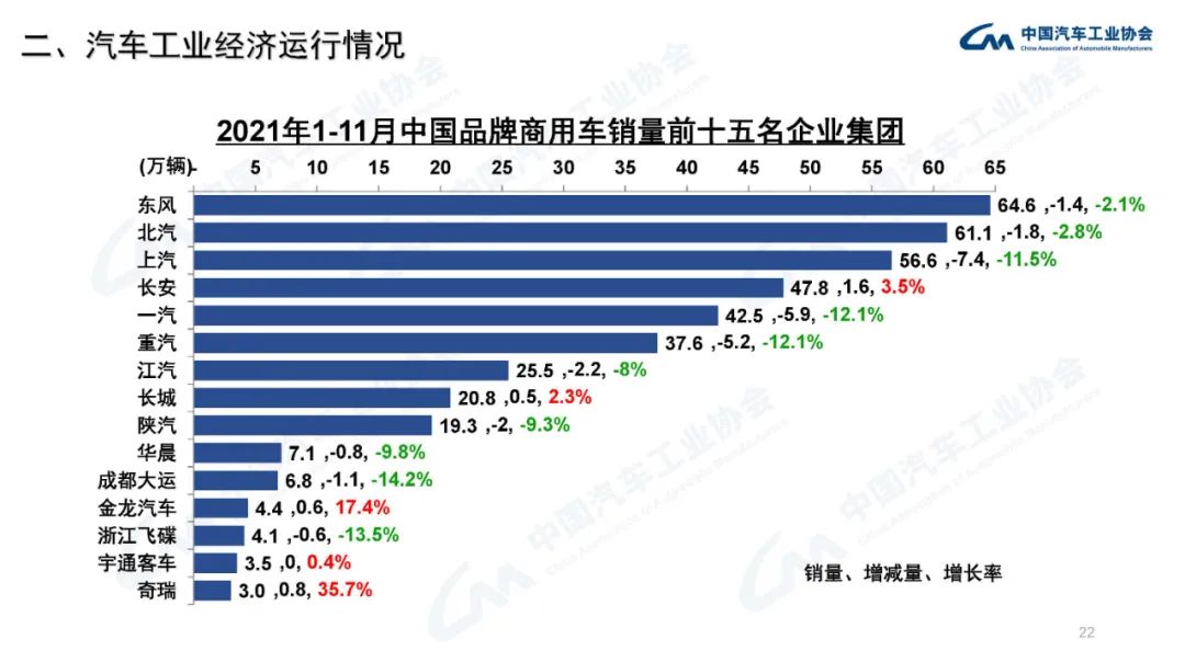 中国汽车工业协会:2021年11月汽车工业经济运行情况 据中国汽车工业协会统计分析,2021年11月,我国宏观经济运行总体稳定,党中央和国务院出台的一系列加强能源供应保障、稳定市场价格等政策措施成效不断显现,电力供应紧张情况有所缓解,原材料价格有所回落,制造业景气面有所扩大,非制造业总体保持稳定恢复。汽车行业努力克服芯片供应紧张、散点疫情爆发、政策法规调整等影响,产销形势总体略好于月初预期。 更多阅读:中国汽车工业协会:2021年10月汽车工业经济运行情况中国汽车工业协会:2021年5月中国汽车工业经济运行情况中国汽车工业协会:2021年2月汽车工业经济运行情况中国汽车工业协会:2022年3月汽车工业经济运行情况中国汽车工业协会:2022年8月中国汽车工业经济运行情况中国汽车工业协会:2021年8月汽车工业经济运行情况中国汽车工业协会:2021年12月汽车工业经济运行情况中国汽车工业协会:2025年4月中国汽车工业经济运行报告中国汽车工业协会:2022年5月中国汽车工业经济运行情况中国汽车工业协会: 2022年上半年汽车工业经济运行情况中国汽车工业协会:2023年汽车工业经济运行报告中国汽车工业协会:2024年10月汽车工业经济运行情况中国汽车工业协会:2023年1-2月我国汽车商品出口金额前十国情况简析中国汽车工业协会:2022年3月前十位轿车品牌销量排名中国汽车工业协会:2021年5月汽车工业运行情况简述