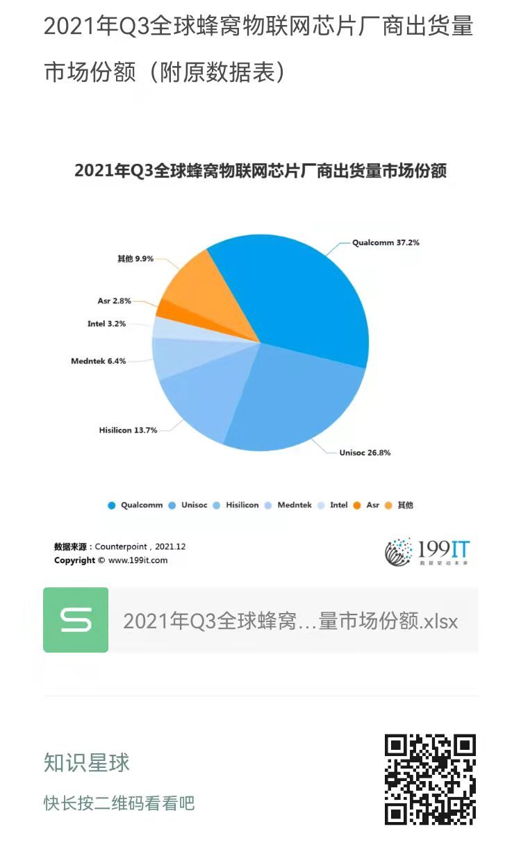 2021年Q3全球蜂窝物联网芯片厂商出货量市场份额(附原数据表) ​​​​