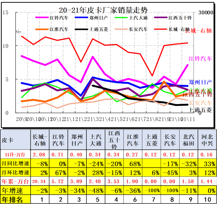 1、全国皮卡市场11月走势对比