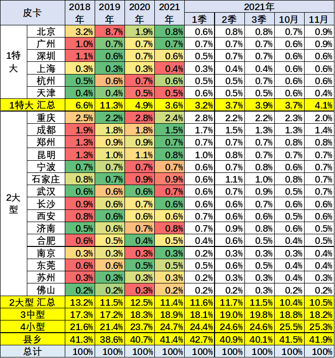 皮卡市场目前主要的销售区域还是以中小城市和县乡市场为主,尤其是县乡市场目前的表现相对来说还是较强。今年1-11月的县乡市场表现尤其突出的特征。而中型城市市场保持稳定,大城市市场目前来看并没有明显的突破特征。