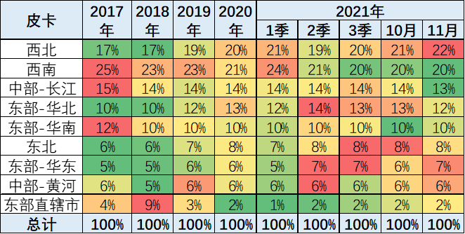 而目前增长相对比较快的是华北地区和中部黄河地区,包括东北地区皮卡市场也有明显的启动特征。