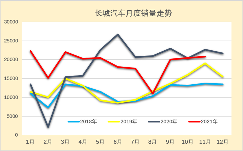 江铃汽车2021年的11月厂商销量7103辆,同比增长0.1%,表现较强。2020年江铃汽车皮卡随着车市的动荡而销量逐步走强,2021年1月开局销量平稳。前期江铃汽车的皮卡车型也是处于国六调整过程中。