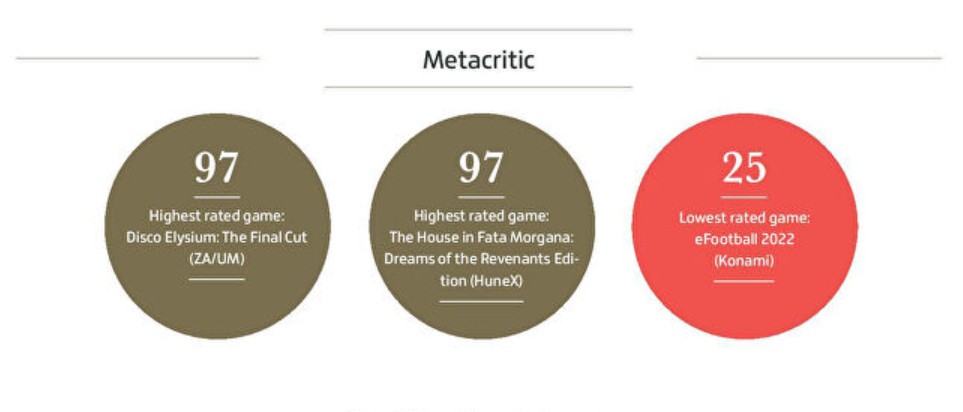 评分最高游戏:《极乐迪斯科:导演剪辑版》《海市蜃楼之馆 -游魂归梦-》,97分