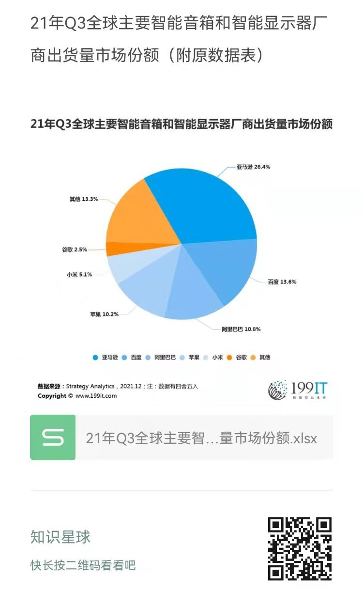 - 2021年Q3全球主要智能音箱和智能显示器厂商出货量及增长率(附原数据表)