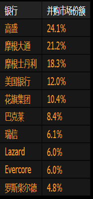 2021年全球并购交易创下纪录,高盛集团坐稳头把交椅。