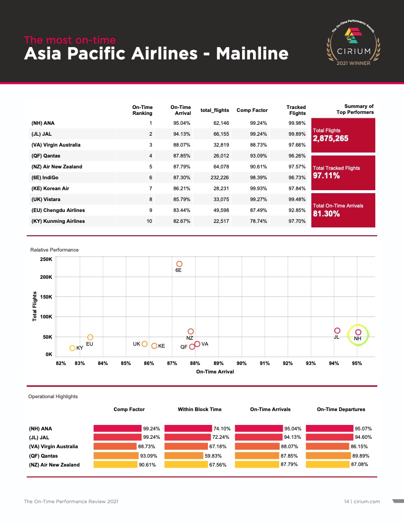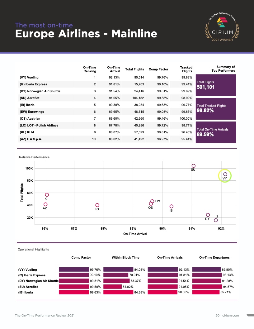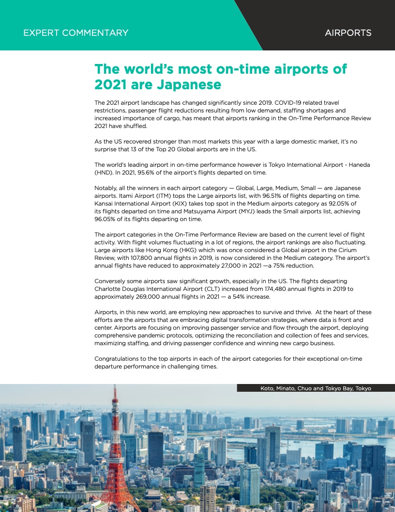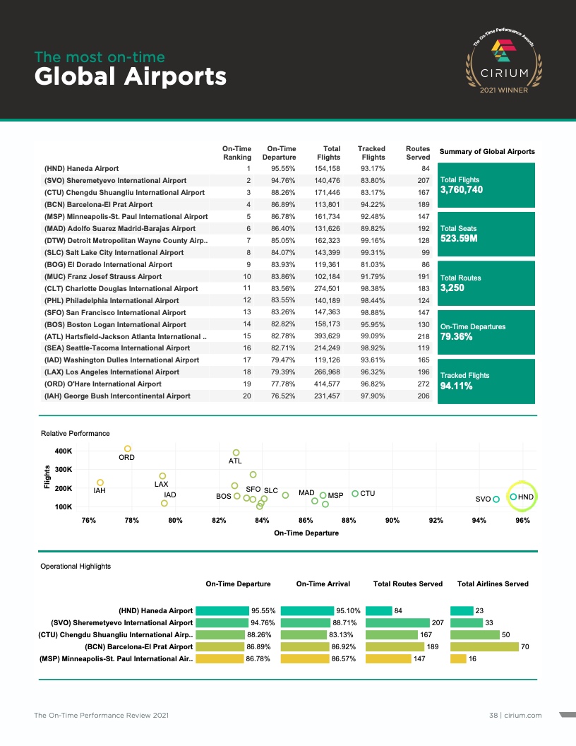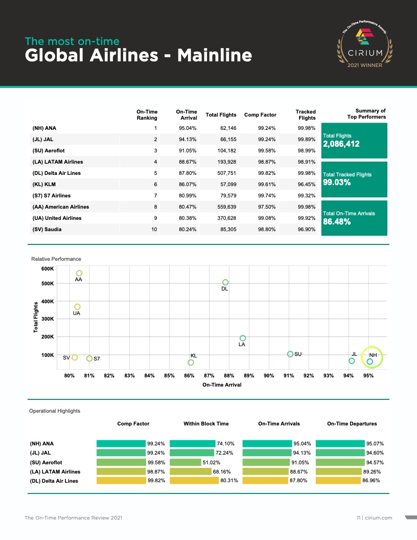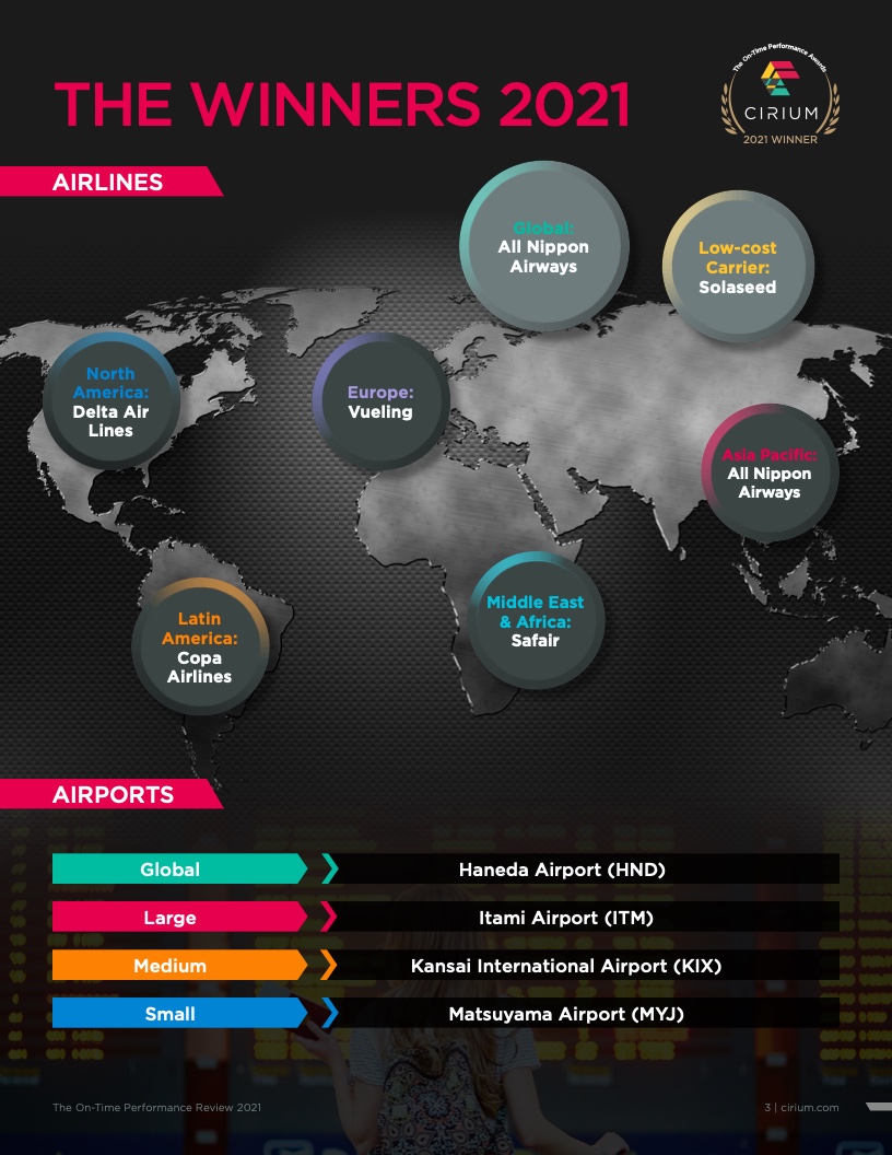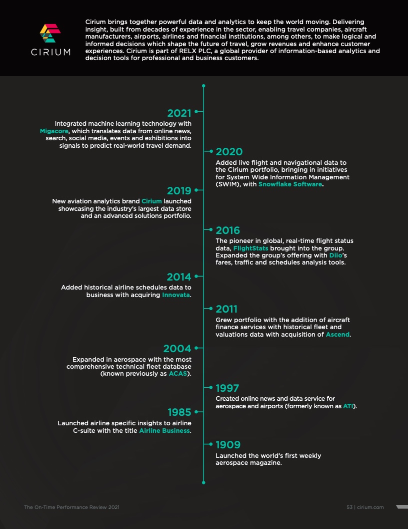 - Cirium(睿思誉)发布了《2021准点率报告》,这是航空公司和机场准点表现评估的国际标准