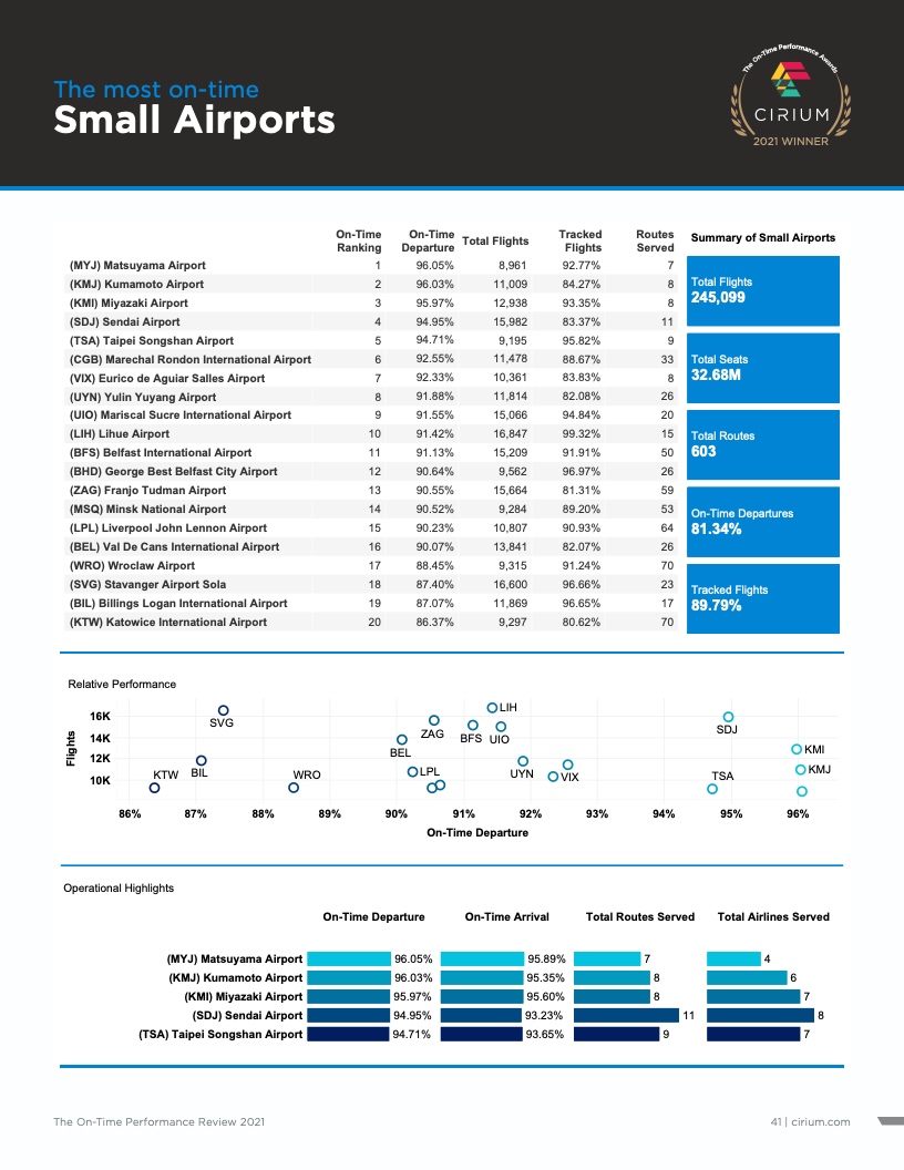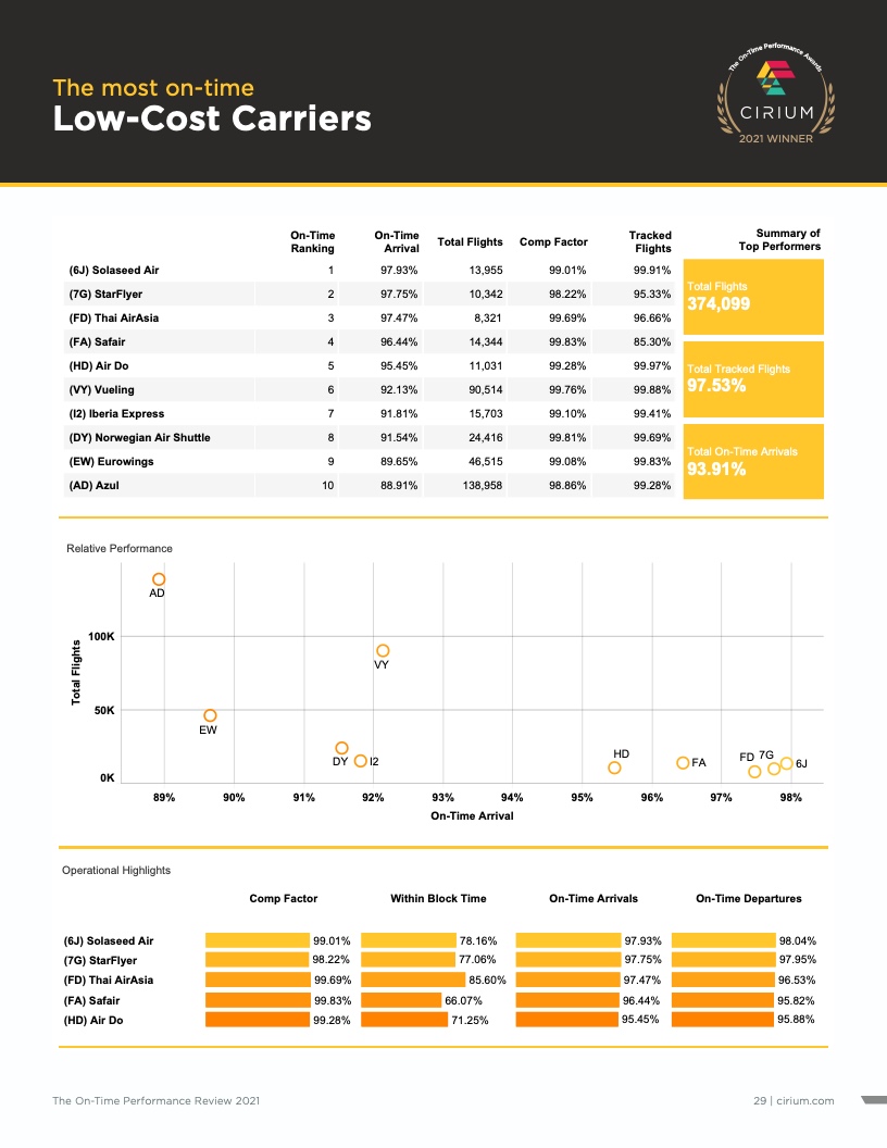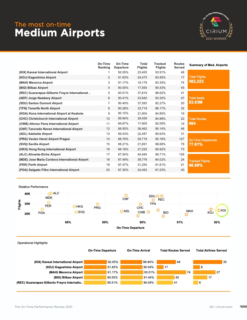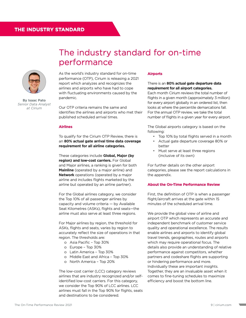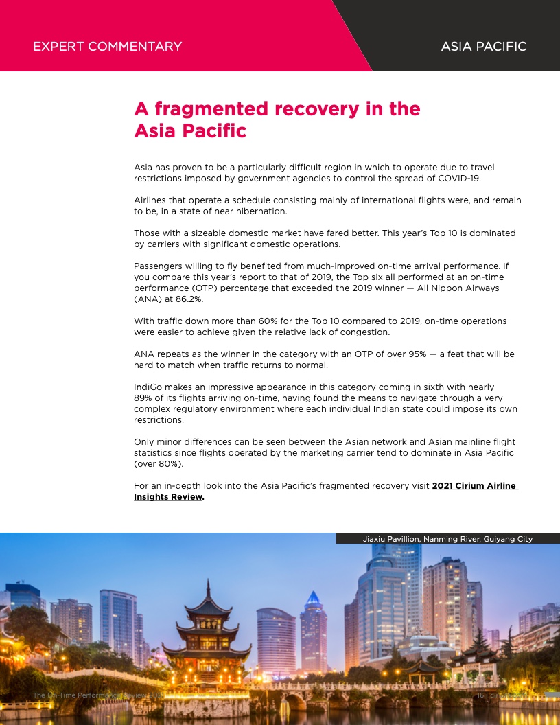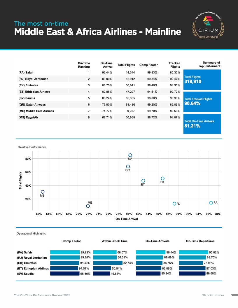 - Cirium(睿思誉)发布了《2021准点率报告》,这是航空公司和机场准点表现评估的国际标准