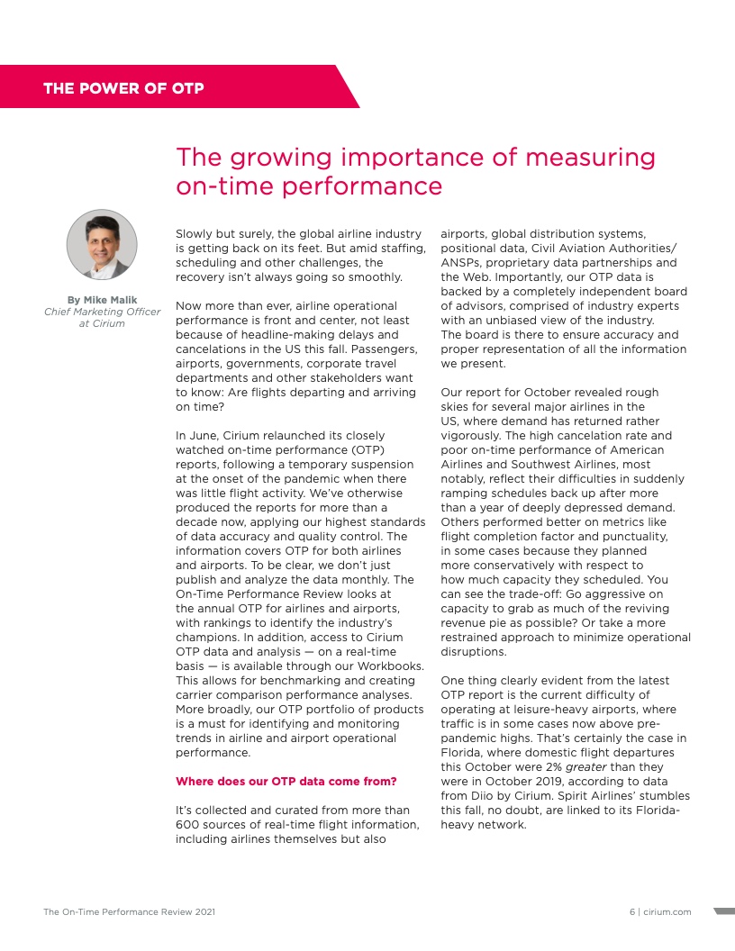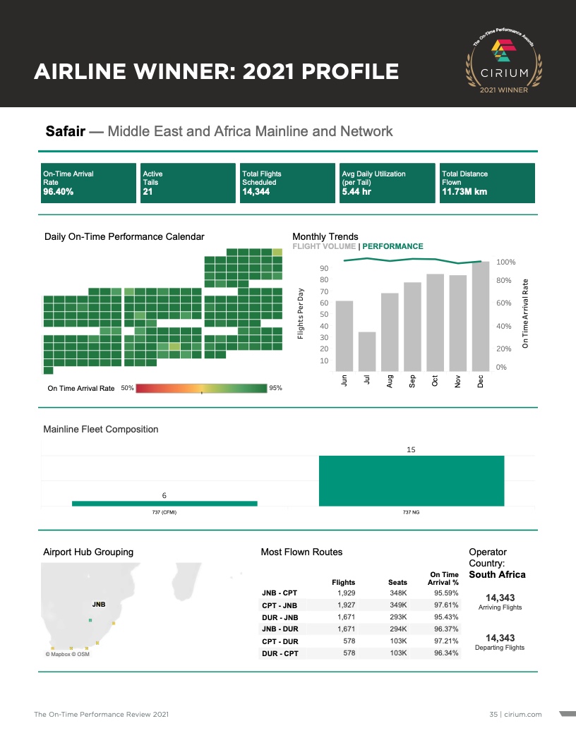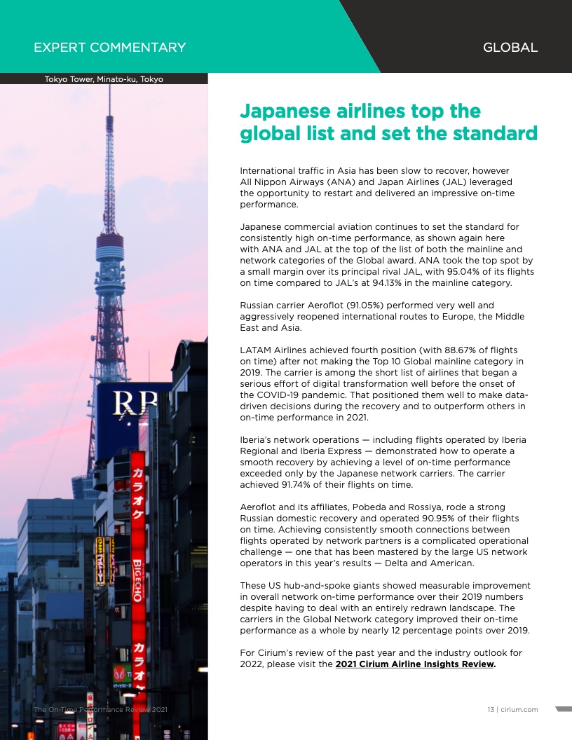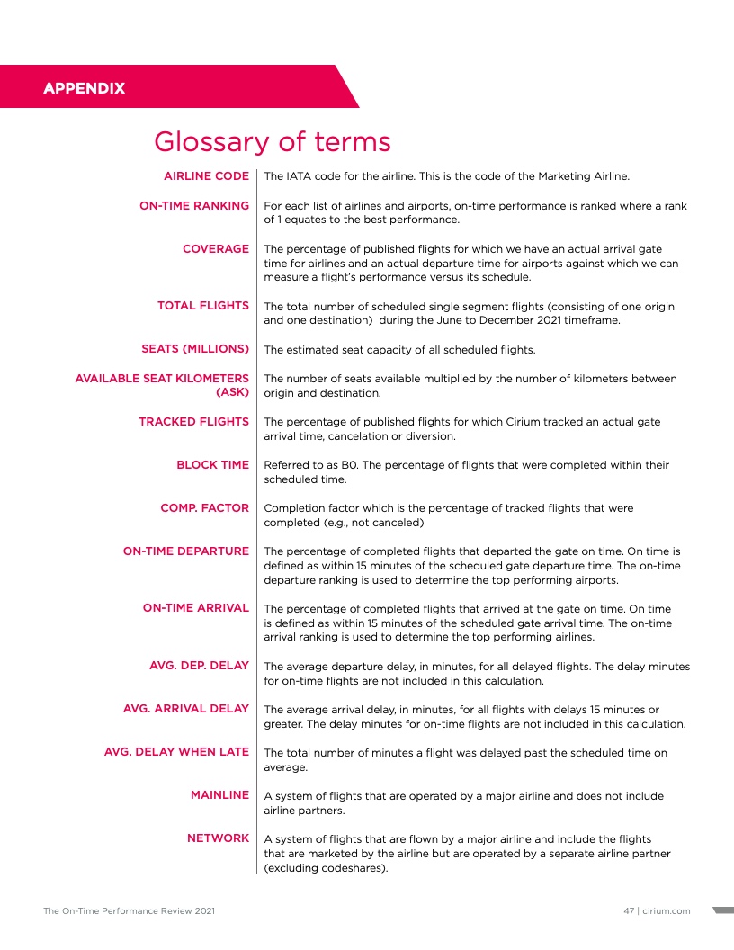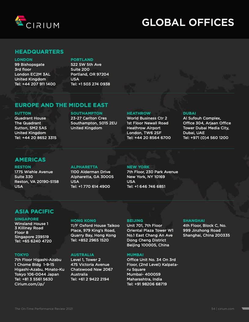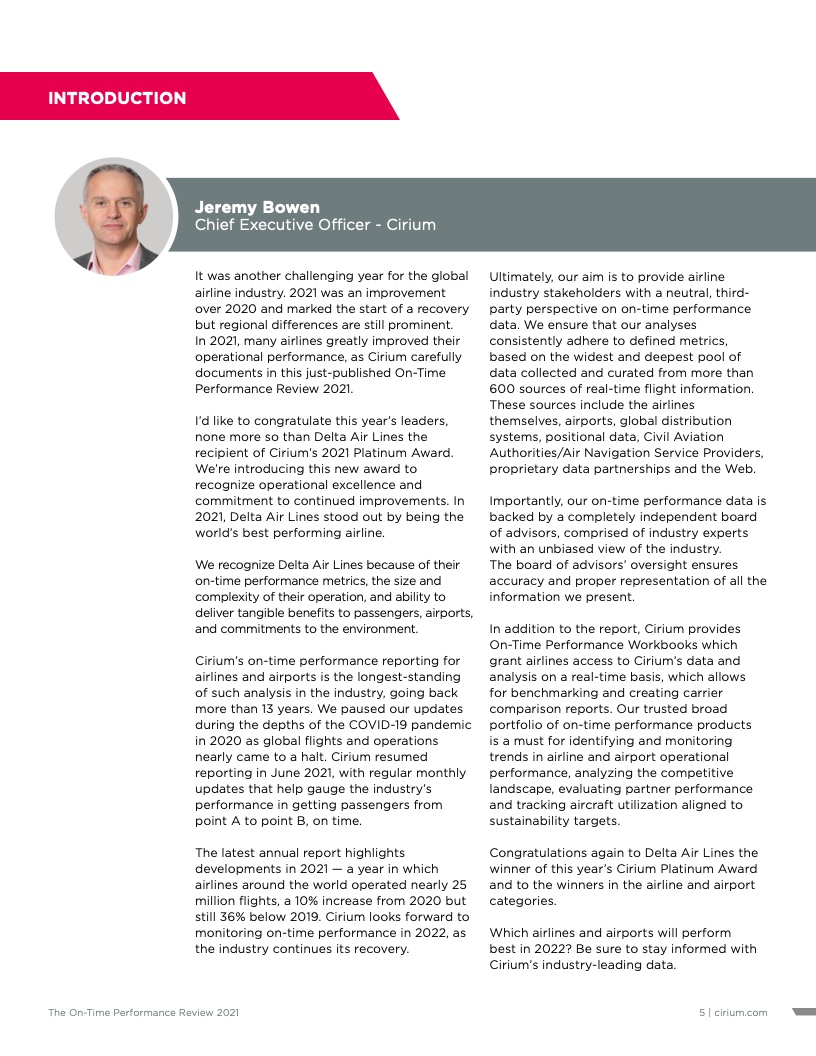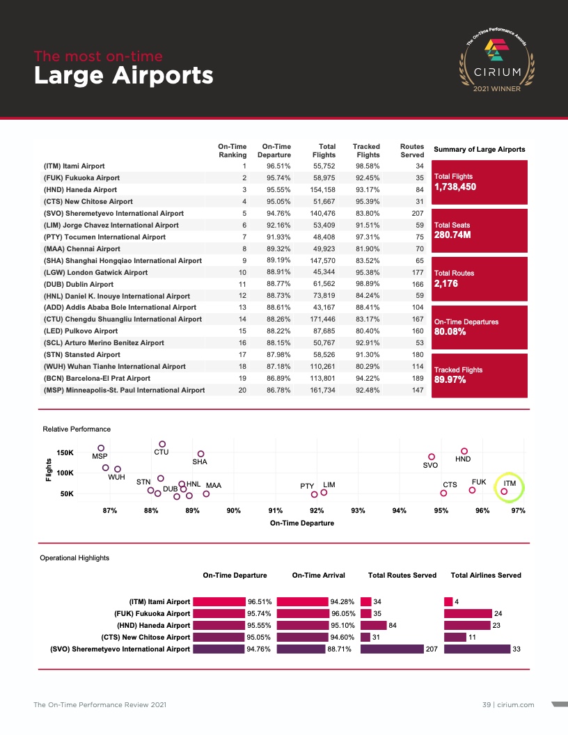 - Cirium(睿思誉)发布了《2021准点率报告》,这是航空公司和机场准点表现评估的国际标准