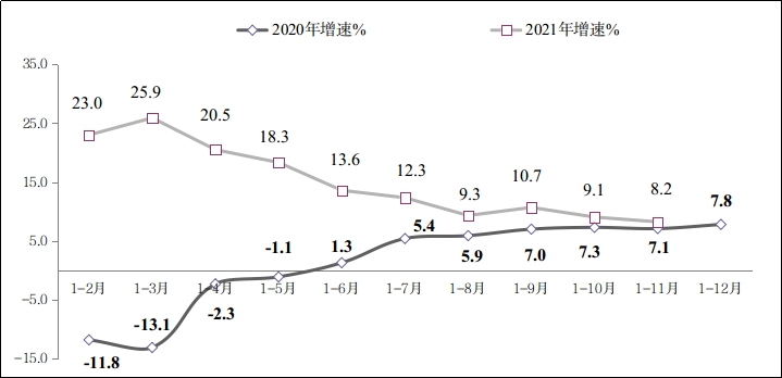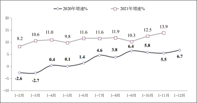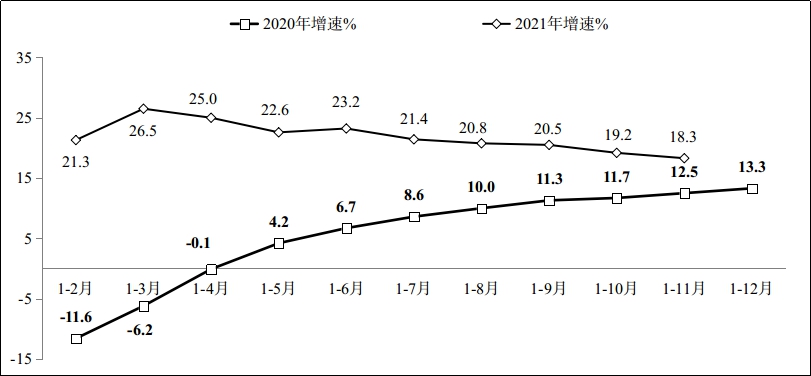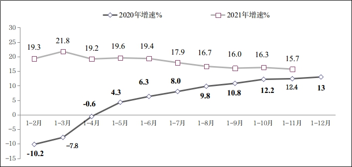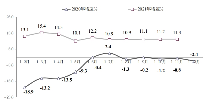 图 2 2020 年-2021 年 1-11 月份利润总额增长情况