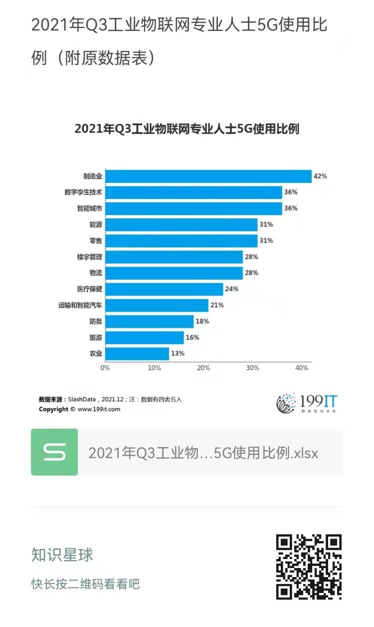 2021年Q3工业物联网专业人士5G使用比例(附原数据表) 更多阅读:Gartner:到2020年5G物联网终端设备将达到350万台房地产科技2020:房地产的未来GSMA:2020年移动经济报告爱立信:移动服务套餐创新调查IBM:Salesforce的状态报告GSMA:智能连接——5G、AI和IoT的组合如何改变美洲亚马逊云科技re:Invent迎来十周年 计算、物联网、5G、无服务器等云产业未来技术悉数上新2022年全球主要蜂窝物联网芯片组厂商出货量市场份额(附原数据表) 2023年全球主要物联网行业支出市场份额(附原数据表) 5G批准的3GPP技术贡献份额最多的公司(附原数据表) 2020年全球前六大5G智能手机厂商产量及全球市场份额(附原数据表) 2021年Q1全球主要5G智能手机厂商出货量(附原数据表) 2030年中东和北非各行业对5G贡献份额(附原数据表) 2020年1-11月中国5G手机出货量及占比(附原数据表)中国通信标准化协会:“物联网+区块链”应用与发展白皮书