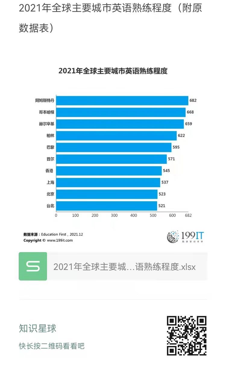 2021年全球主要城市英语熟练程度(附原数据表) ​​​​