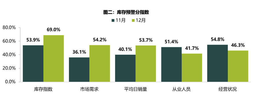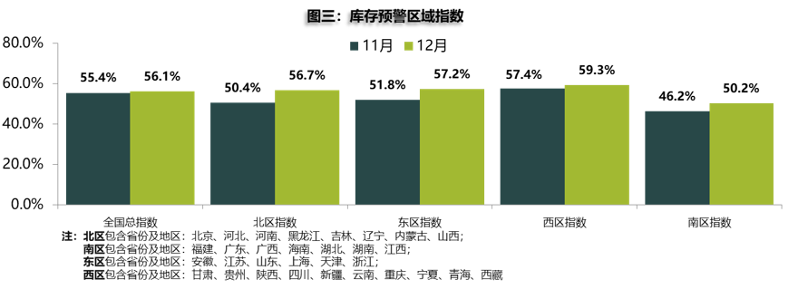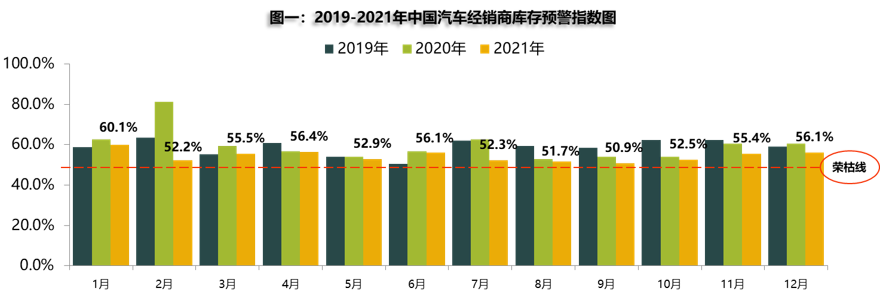 2021年12月31日,中国汽车流通协会发布的最新一期“中国汽车经销商库存预警指数调查”VIA(Vehicle Inventory Alert Index)显示,2021年12月汽车经销商库存预警指数为56.1%,同比下降4.6个百分点,环比上升0.7个百分点,库存预警指数位于荣枯线之上。